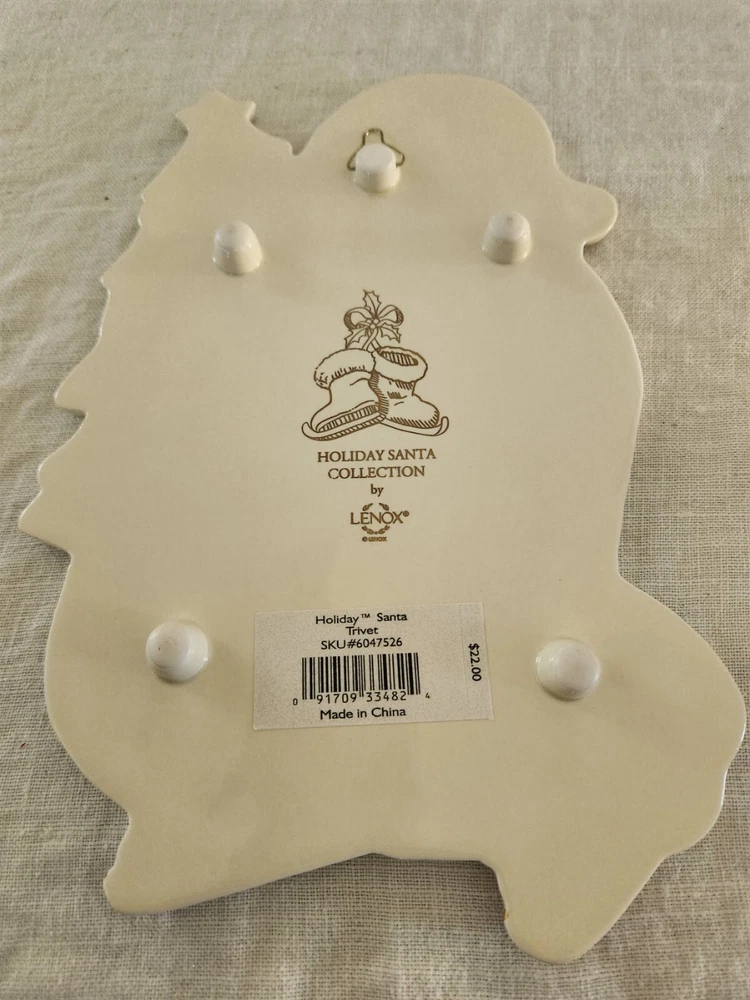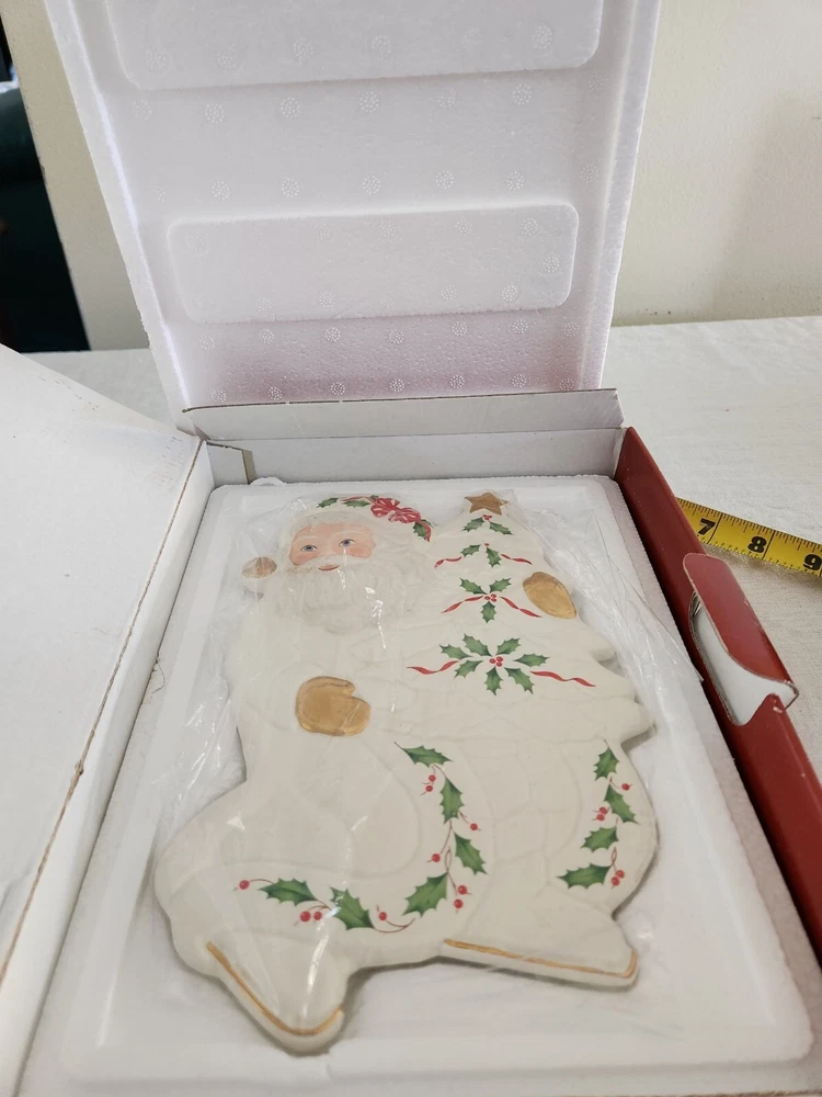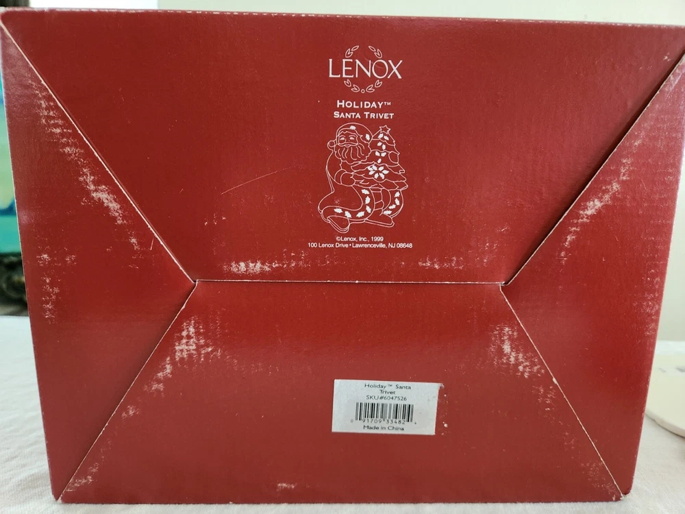 Vintage 1999 Lenox Santa trivet or wall hanging, used but in excellent condition. The item comes in the original box, with its original packaging. Box has some wear, as shown.