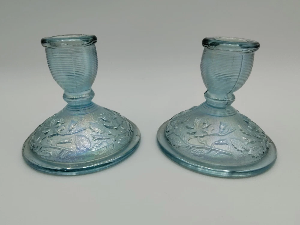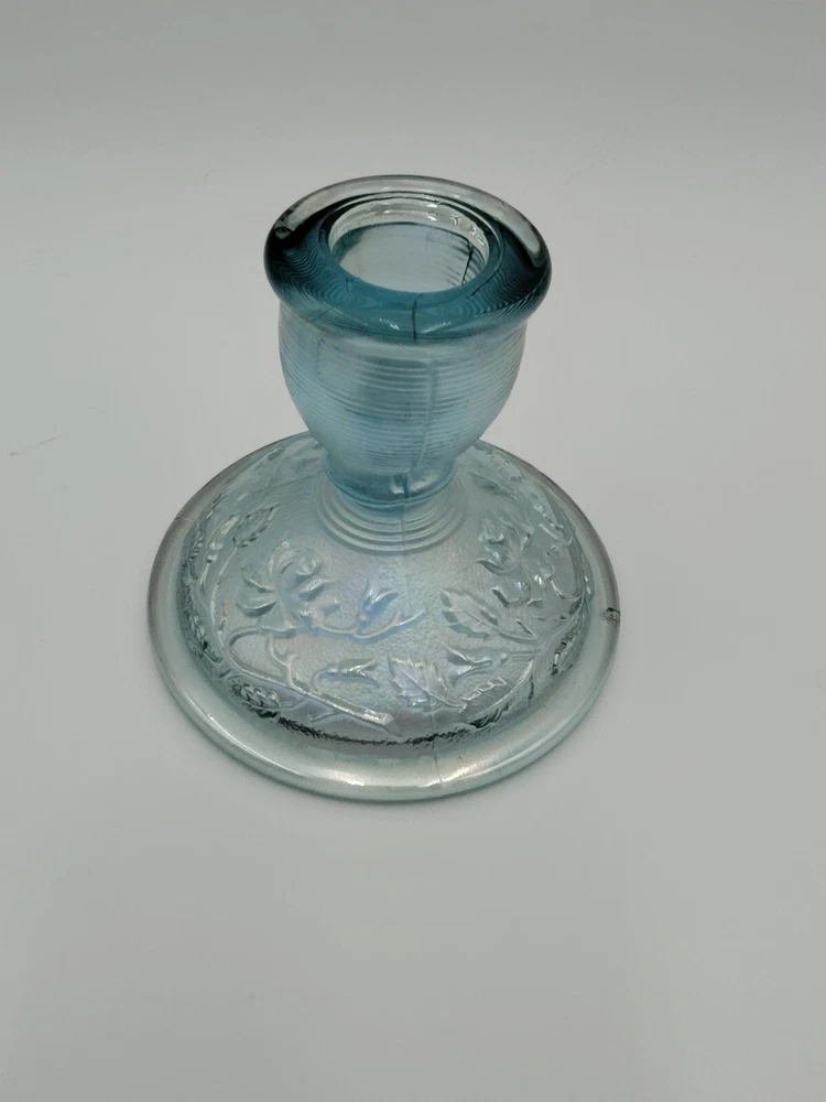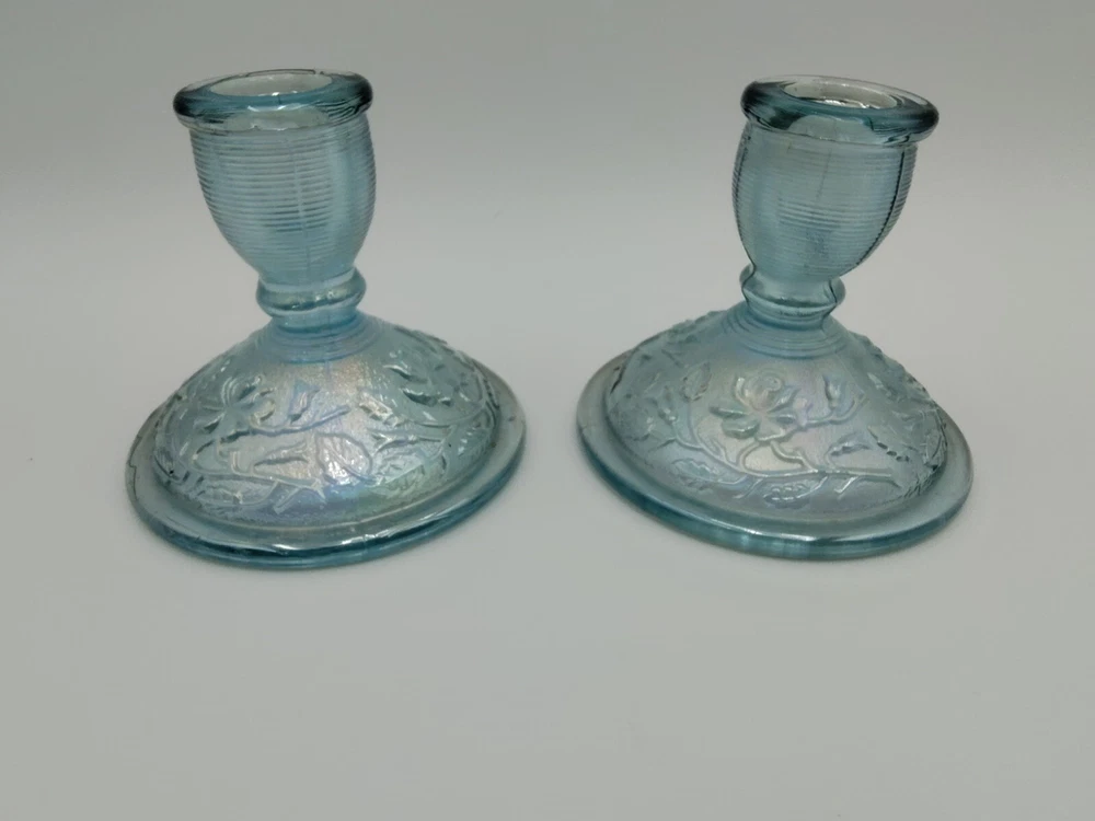 Color: Blue Brand: Lenox Imperial Glass Country/Region of Manufacture: United States Glassware Type: Elegant Theme: Floral & Garden, Flowers Material: Glass Type of Glass: Iridescent Subject: Rose Type: Candle Holder Model: Lenox Imperial Time Period Manufactured: 1979-1980 Production Style: Carnival Glass Suitable For: Taper/Dinner Candle