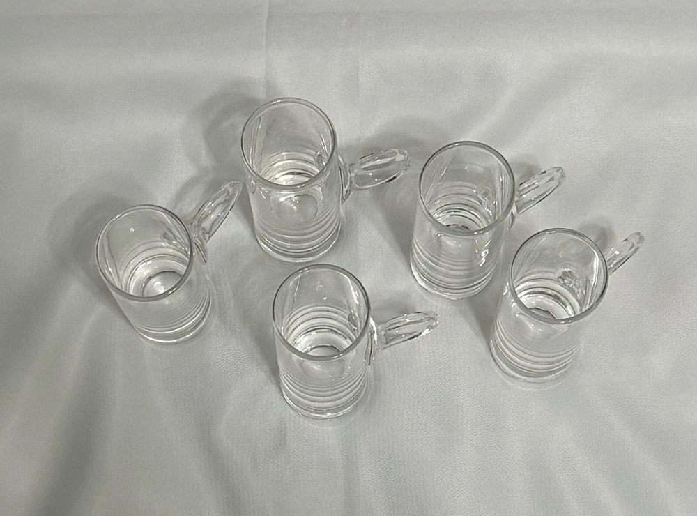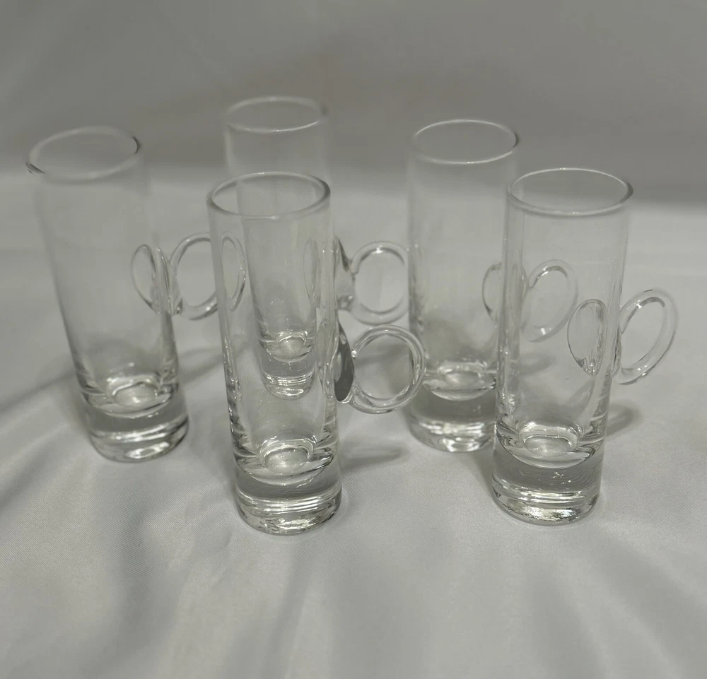 Info regarding shipping weight. These will be packaged up inside a box with bubble wrap and then put inside another box for protection. Elevate your drinking experience with these elegant Lenox Irish Coffee Espresso Glasses. This five-piece set is perfect for all occasions and features a cylinder shape with a clear glass material and a loop handle for easy holding. The glasses have a capacity of 4-5oz and stand at a height of 4” inches. These contemporary glasses are signed by Lenox USA and are licensed reproductions of the original Irish Coffee Glasses.