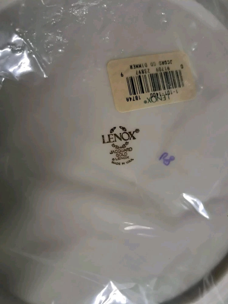 4 Lenox Jacquard Gold' 10-7/8" Dinner Plates. Fish Scale Textured Sealed. Excellent condition. See photos. * I opened 1 for detailed pictures*