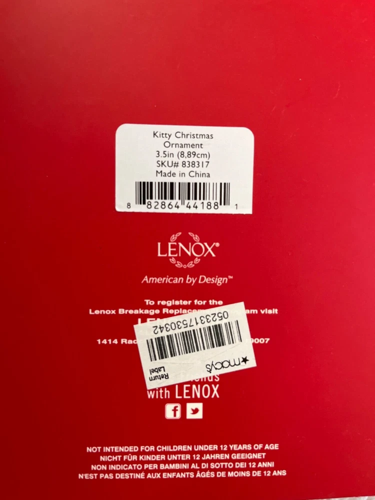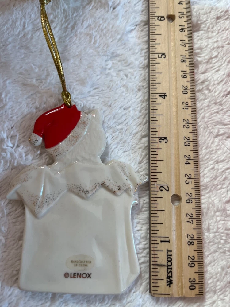 Add a touch of festive feline charm to your Christmas tree with the Lenox Kitty Christmas Ornament. This delightful porcelain cat is adorned with a vibrant red Santa hat, sure to bring a smile to any cat lover's face. The ornament, a product of the renowned 2009 collection, stands at a quaint 3.5 inches, making it a perfect addition to any holiday display.This special hanging decoration comes in its original box, marked with the MPN 838317, showcasing the intricate 'CAT' pattern designed to capture the spirit of Christmas. Whether you're starting a new collection or adding to an existing one, this Lenox ornament is a timeless piece that celebrates the holiday season and the warmth of home.