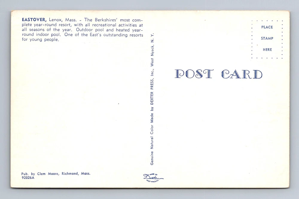 Lenox MA-Massachusetts, Eastover Year Round Resort, Berkshires' Vintage Postcard
