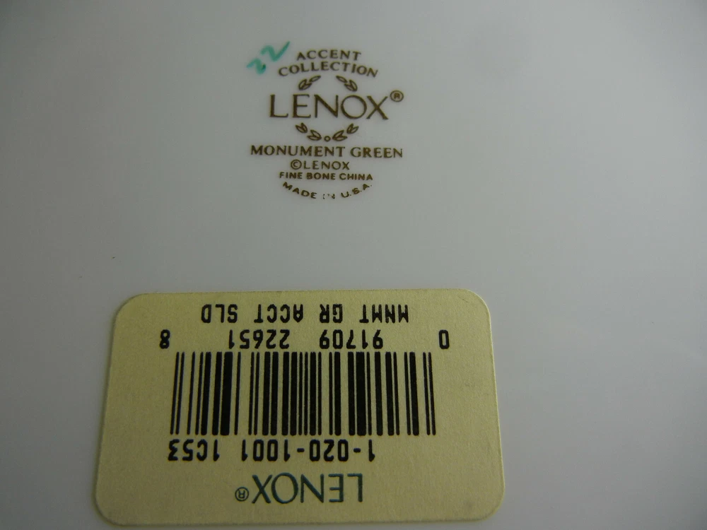 Manufacturer: Lenox China Pattern: Monument Green Item: Salad Plate Size: 8 1/4" diameter. Condition: New. Shipping for domestic and Canadian rates can be found in the item description. We will ship international and rates will be determined by location.