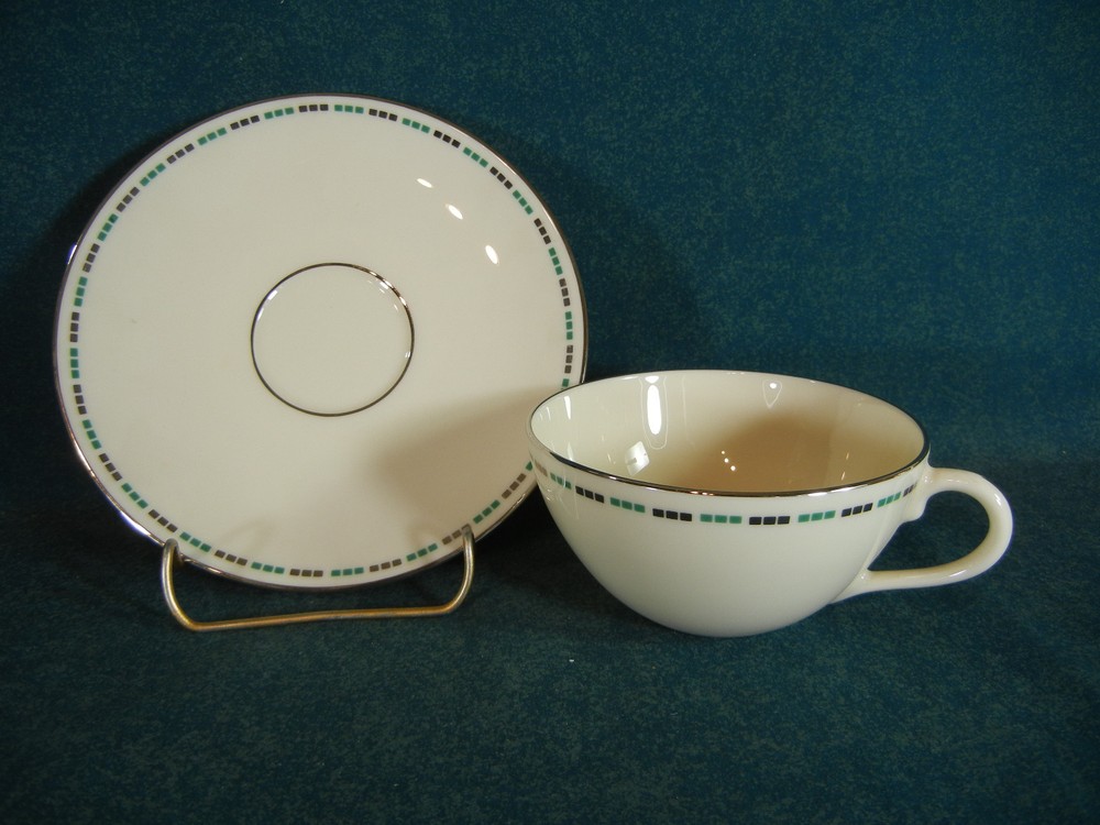 Manufacturer: Lenox China - Made in America Pattern: Oslo - Pattern H520 Item: Cup and Saucer Set Size: Cup: 2" tall x 4" diameter. Saucer: 6" diameter Condition: Excellent. Shipping for domestic and Canadian rates can be found in the item description. We will ship international and rates will be determined by location.