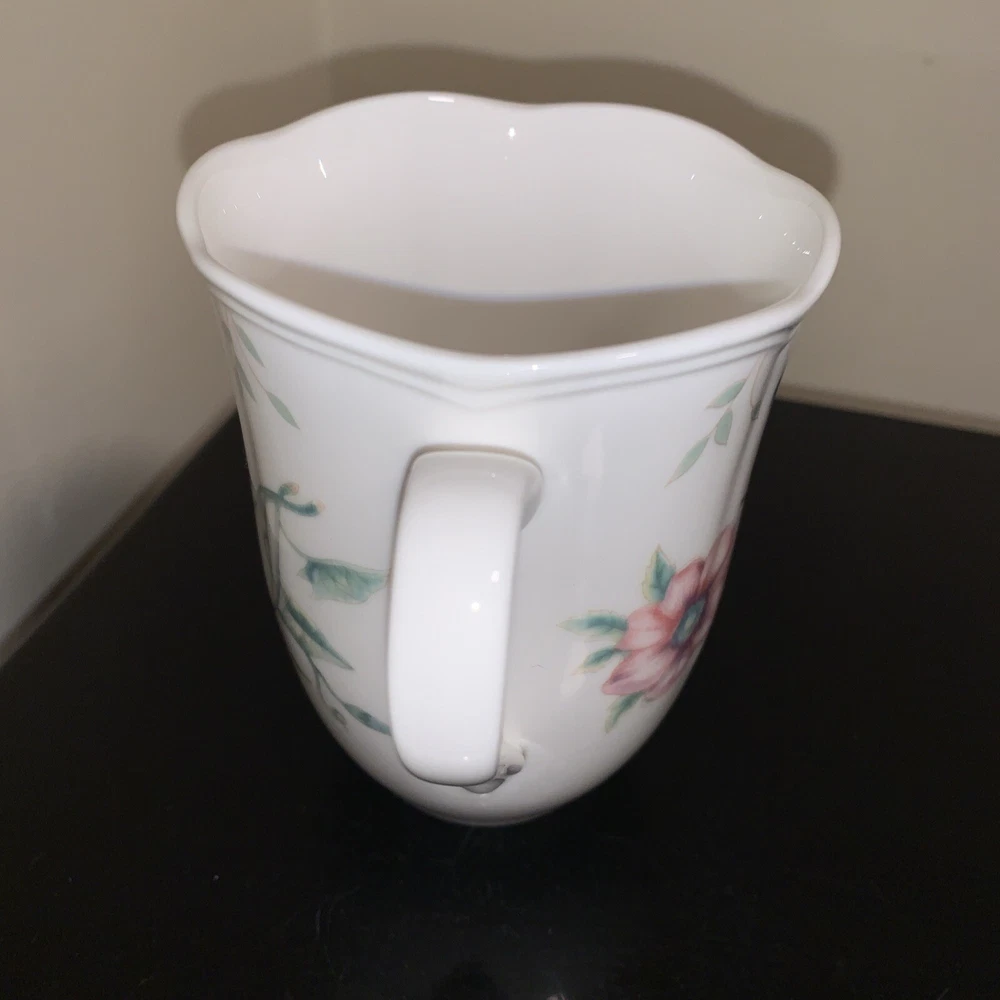 The Lenox Swallowtail Replacement Mug is part of the Butterfly Meadow Collection, featuring a round shape with a painted multicolor Swallowtail butterfly pattern on porcelain material. This small mug is suitable for hot beverages and has an item diameter of 3 and 1/4 inches, height of 4 and 1/4 inches, and width of 3.5 inches. It is designed for one person and comes as a single coffee cup/mug branded by Lenox, making it an elegant and artistic addition to any collection or table setting. Crafted in USA, Indonesia and China. New but has been rinsed off and dried.