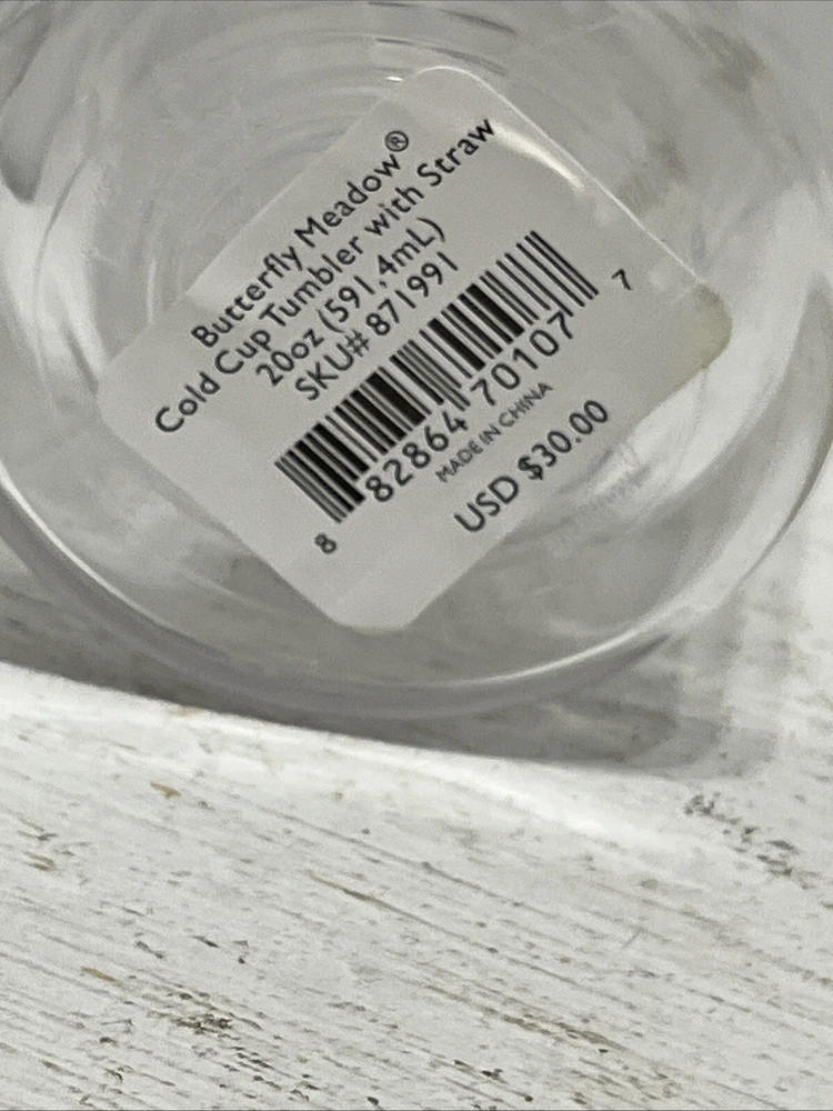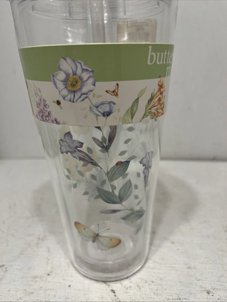 Lenox Plastic Cold Cup Floral Tumbler With Straw 20 Oz NWT Butterfly Garden