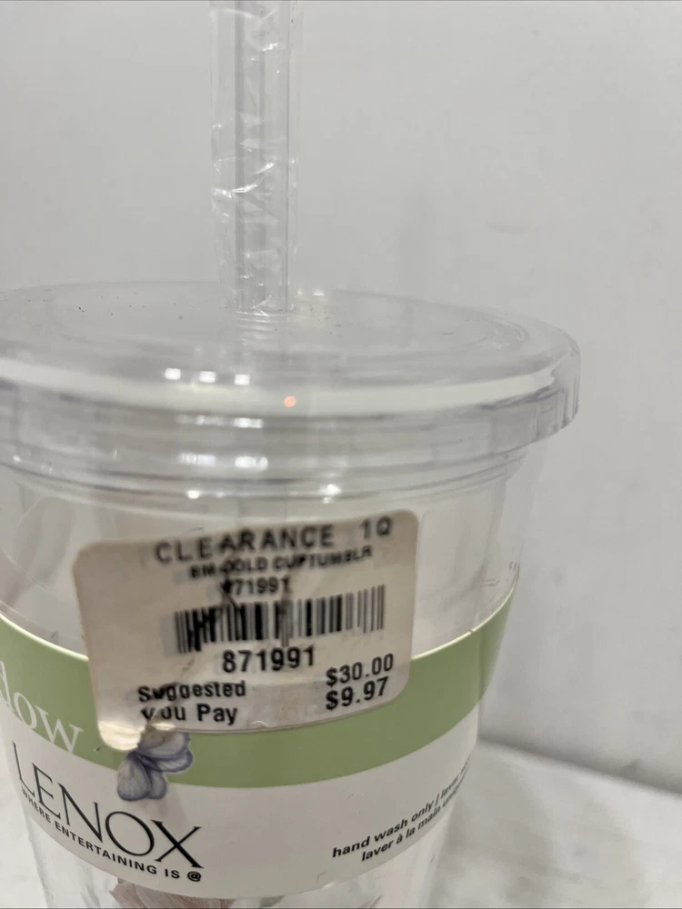 Type: Tumbler Glassware Type: Drinking Glass Service For: 1 Theme: Floral, Garden, n/a Occasion: All Occasions Pattern: Floral Design: Curved Inward Features: With Lid, With Straw Character Family: n/a Brand: Lenox Model: Lenox Butterfly Meadow Cold Cup Tumbler Material: Plastic Care Instructions: Hand Wash Only Department: Teens, Adults Capacity: 20 Oz Number of Items in Set: 1 Piece Item Weight: 1 lb Color: Multicolor Set Includes: Cup, Cup Lid, Straw MPN: n/a Item Height: 7.5" Country/Region of Manufacture: China Character: n/a Personalize: No