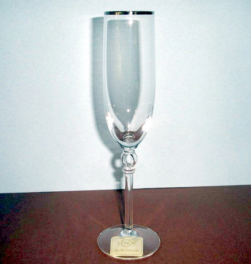 Lenox Platinum Innocence Crystal Champagne Flute Pair These unique elegant crystal flutes are adorned with a pierced ring in stem - an open oval shape at top of the multi- sided slender stem and the bowl is rimmed in a platinum band... perfect for any occasion. • Brand new with original stickers, never used. open stock-not in retail box, but will be carefully packed to ensure safe arrival • Expertly made in Germany of clear full lead crystal • Approx. 9-5/8" tall x 1-7/8" across top rim, 2" in diameter, hold-6 oz. • Etched with the "Lenox" hallmark on the base • Discontinued pattern - hard to find! ------------- Please closely examine the listing and submit any questions prior to purchase. Pictures may not reflect true colors due to various lighting conditions. Ships from a smoke-free, pet-free environment.