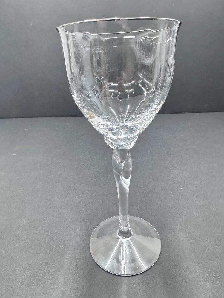 Lenox Rhythm Platinum Water Goblet Glass Optic Swirl Twisted Stem 8 1/2"
