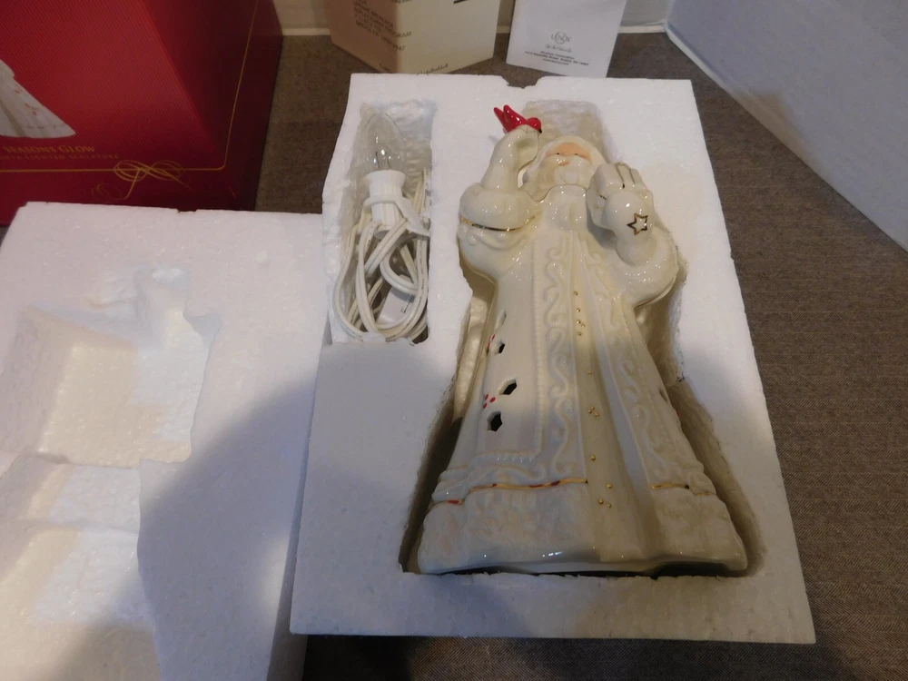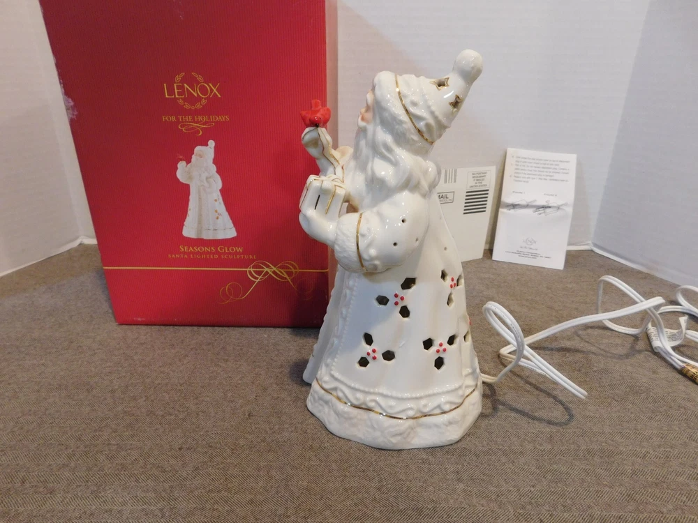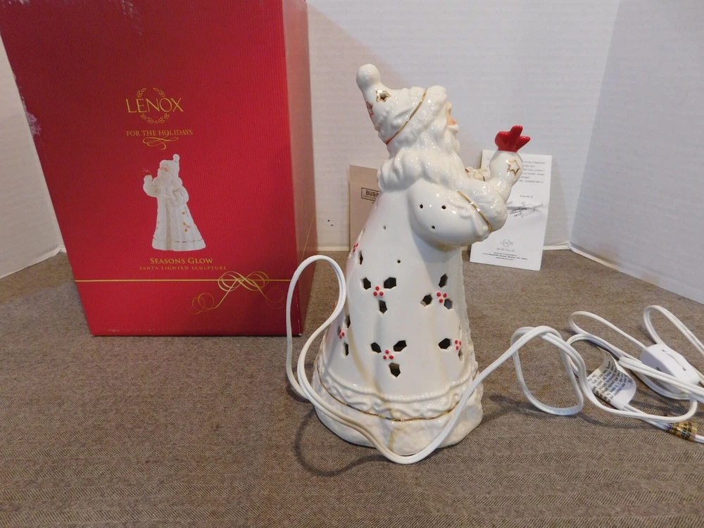 This lit figure measures 8-1/4" tall, 4-3/4" in diameter. It has a removable light cord for storage and an on/off switch. Works.