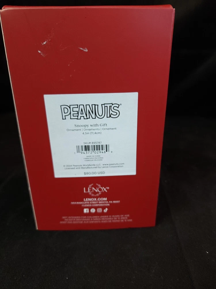 Set Includes:OrnamentFranchise:PeanutsSize:SmallColor:MulticolorBrand:LenoxMaterial:Ceramic & PorcelainCountry/Region of Manufacture:ChinaOriginal/Licensed Reproduction:OriginalCharacter:SnoopyType:OrnamentPersonalize:NoTheme:ChristmasHandmade:NoOccasion:ChristmasNumber of Items:1Antique:NoFeatures:Hanging, DecorativeCollection:OrnamentsVintage:No