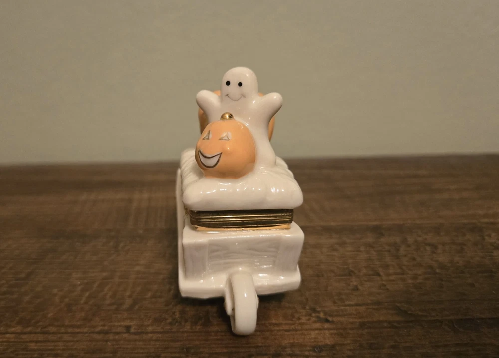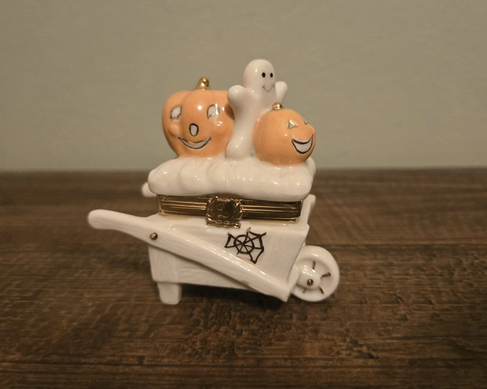 Features: Boxed Theme: Seasonal Occasion: Halloween Material: Porcelain Subject: Boxing Brand: Lenox Type: Trinket Box Finish: Glossy Color: Multicolor Size: Small