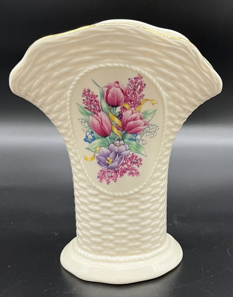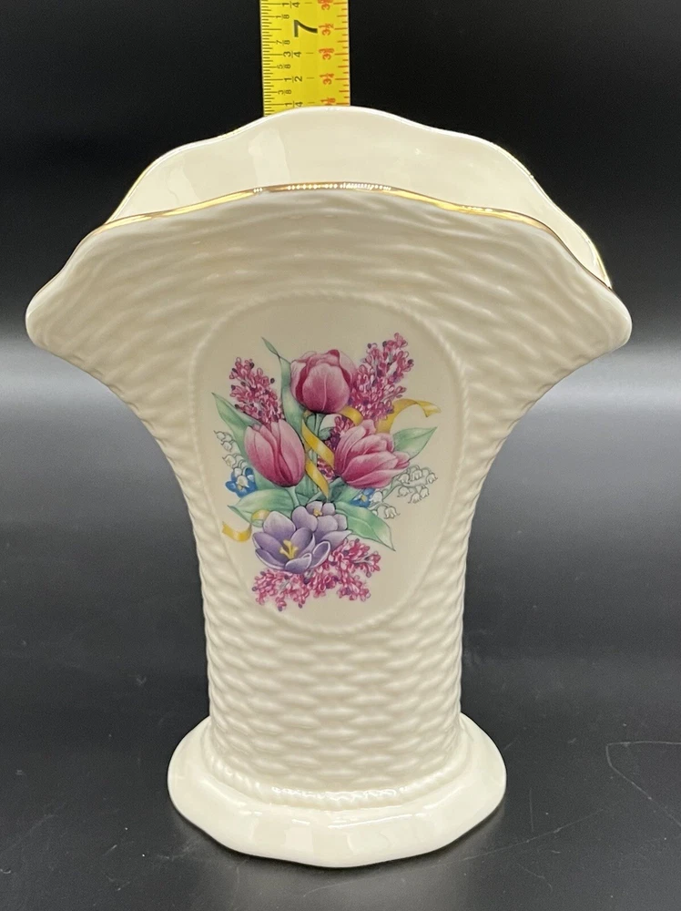 Lenox Floral Lilacs Tulips Flowers Basketweave Creamware Flower Vase Gold Trim. This is a beautiful vase! Perfect for everyday use to display fresh garden flowers. Do you see more than one item that you want? I can combine shipping. Once you have clicked the “Buy It Now” option, request an invoice BEFORE you pay for your items. I am always on the lookout for vintage and sought after items. Please check out my sellers page for other great products!