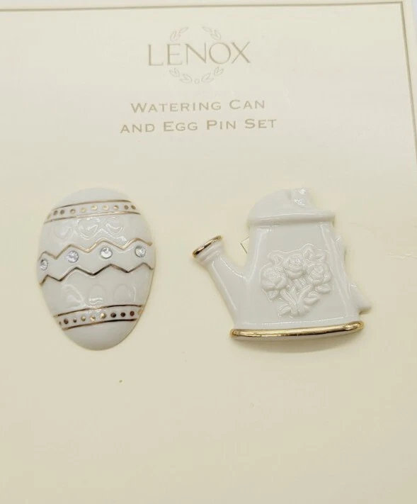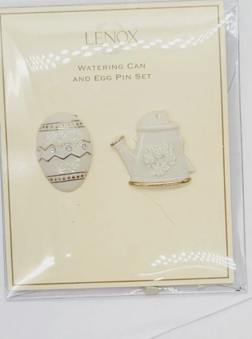 HomeLenox Watering Can & Egg Pin Set Fine Ivory China Spring Brooch Easter 24K