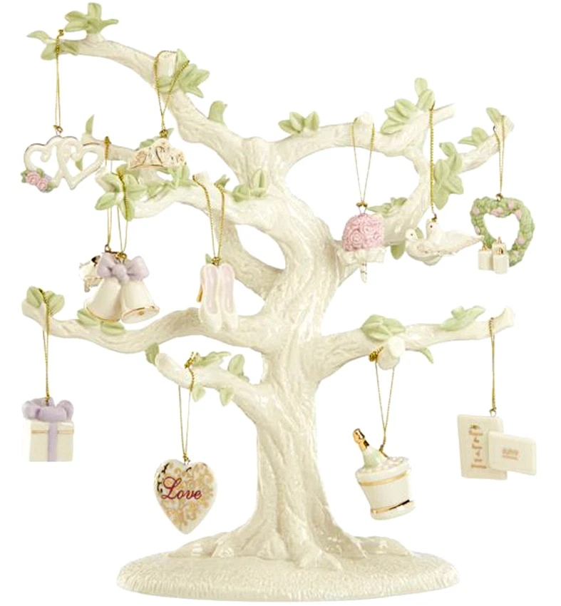 Lenox Miniature Wedding Tree Ornaments, 12 Piece Set (Ornament Tree is Not Included) Brand new, first quality in original box There are 12 mini ornaments in the box, all are hand crafted in great detail of hand-painted glazed creamy fine porcelain china accented with delicate color splashes and embellished with glimmering 24-karat gold. • Wish the happy couple a lifetime of joy with these sculptured Wedding mini tree ornaments. The hanging wedding symbols include: Hearts, dove, wedding bells, champagne, bridal bouquet, wedding shoes, gift box invitation and more. • These tiny ornaments vary in size up to 1.5" long • Include golden cord to hang on the Lenox Universal Ornament Tree which is NOT included (Tree is listed separately) • Made in China • A unique and fun wedding gift to celebrate that special day, great as bridal shower gift! ----------------- Please closely examine the listing and submit any questions prior to purchase. Pictures may not reflect true colors due to various lighting conditions. Smoke-free, pet-free environment.