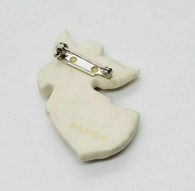 Lenox White Porcelain Angel Brooch Handcrafted Playing Harp RARE