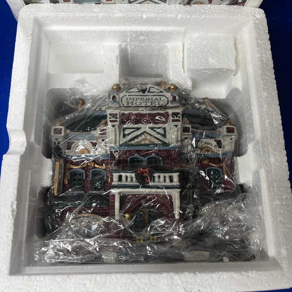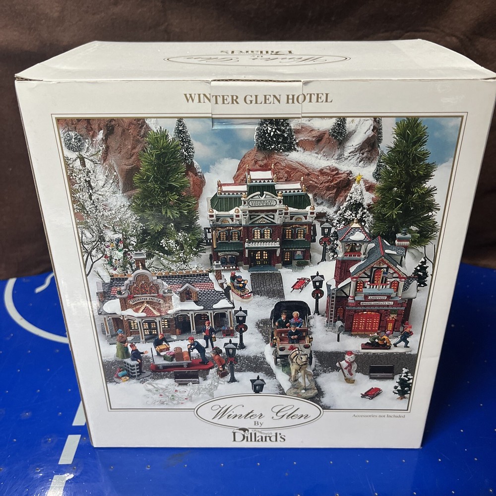 The Lenox Winter Glen Christmas "Winter Glen Hotel" is a ceramic and porcelain collectible from the Lemax brand. This piece is part of the Winter Glen collection and features a charming Winter scene, perfect for the holiday season. Although the product does not include any lights, it is still a beautifully crafted addition to any Christmas village display. The intricate details and high-quality materials make this piece a valuable and festive addition to any holiday decor collection.