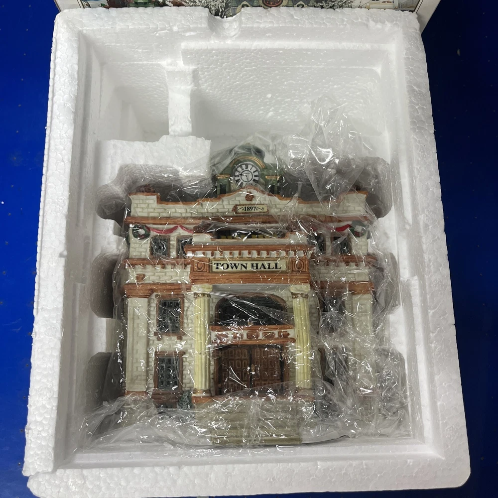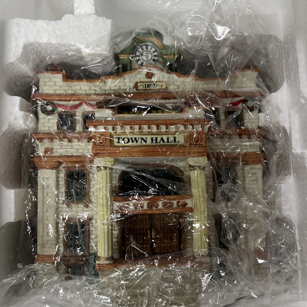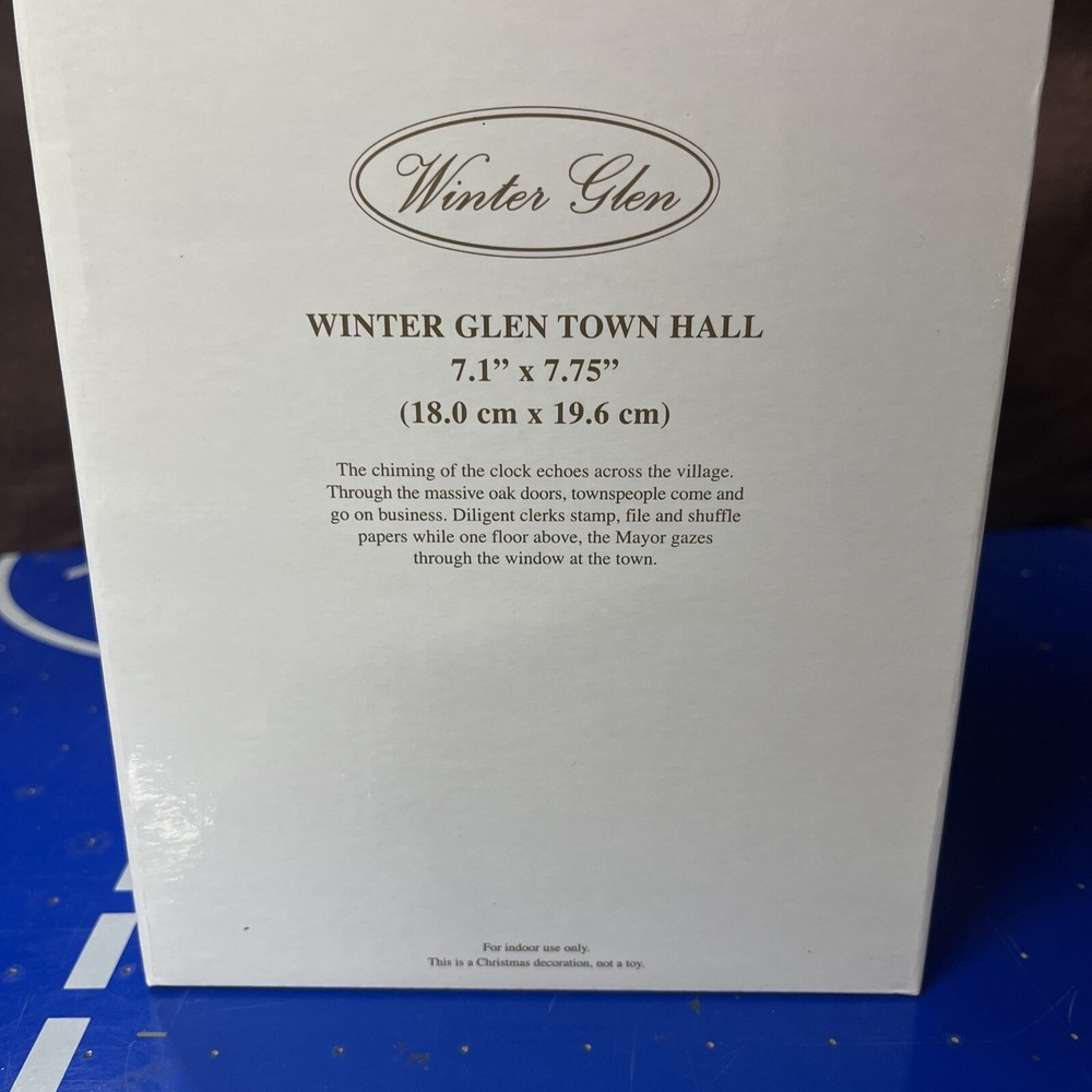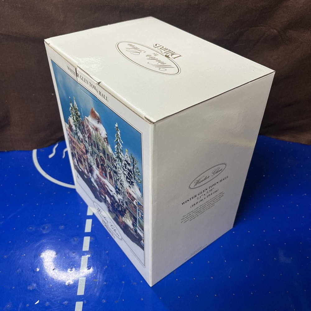 The Lenox Winter Glen by Dillard's Christmas "Winter Glen Town Hall" is a ceramic and porcelain collectible from the Lemax brand. Part of the Winter Glen collection, this Christmas village piece depicts a town hall building featuring lighted Christmas trees. Perfect for adding a festive touch to your holiday decor, this intricately designed piece is sure to bring charm and nostalgia to your seasonal display.