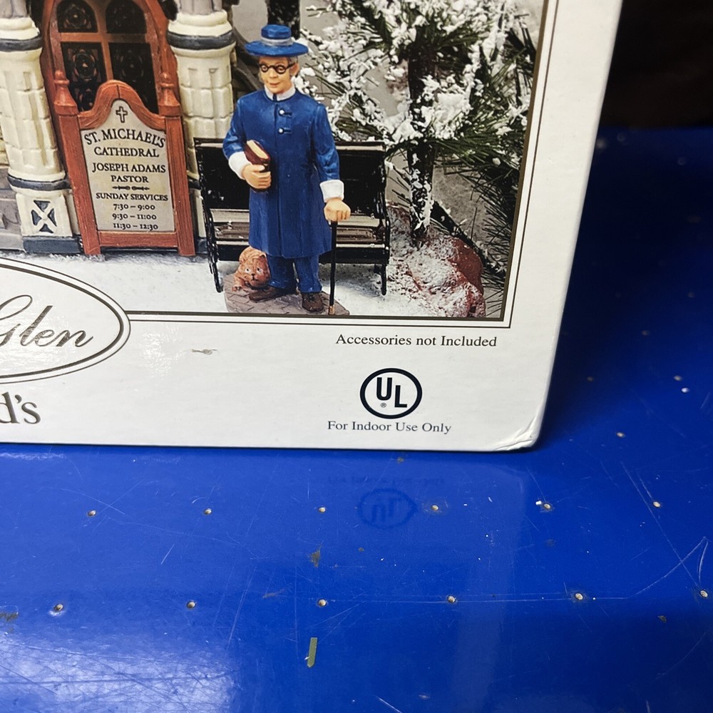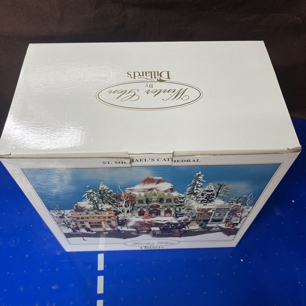 The Lenox Winter Glen by Dillard's Christmas Village St. Michaels Cathedral is a beautifully crafted ceramic and porcelain collectible from Lemax. This intricately designed piece is part of the Winter Glen collection and features a lighted Christmas tree as its subject. Perfect for the winter season, this Christmas village piece adds a touch of festive charm to any holiday display.