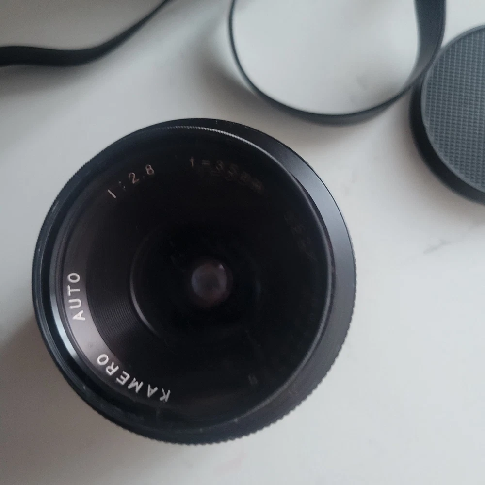 The Kamero Auto 1:2.8 35mm Wide Angle Minolta MD Mount Lens is a high-quality lens designed for Minolta cameras. With a maximum aperture of f/2.8, this wide-angle lens is perfect for capturing a wide field of view with clarity. The autofocus feature makes it easy to capture sharp images without manual adjustment. The lens comes in a nice condition case for protection and storage. Ideal for photographers looking to expand their creative possibilities with a reliable and versatile wide-angle lens.