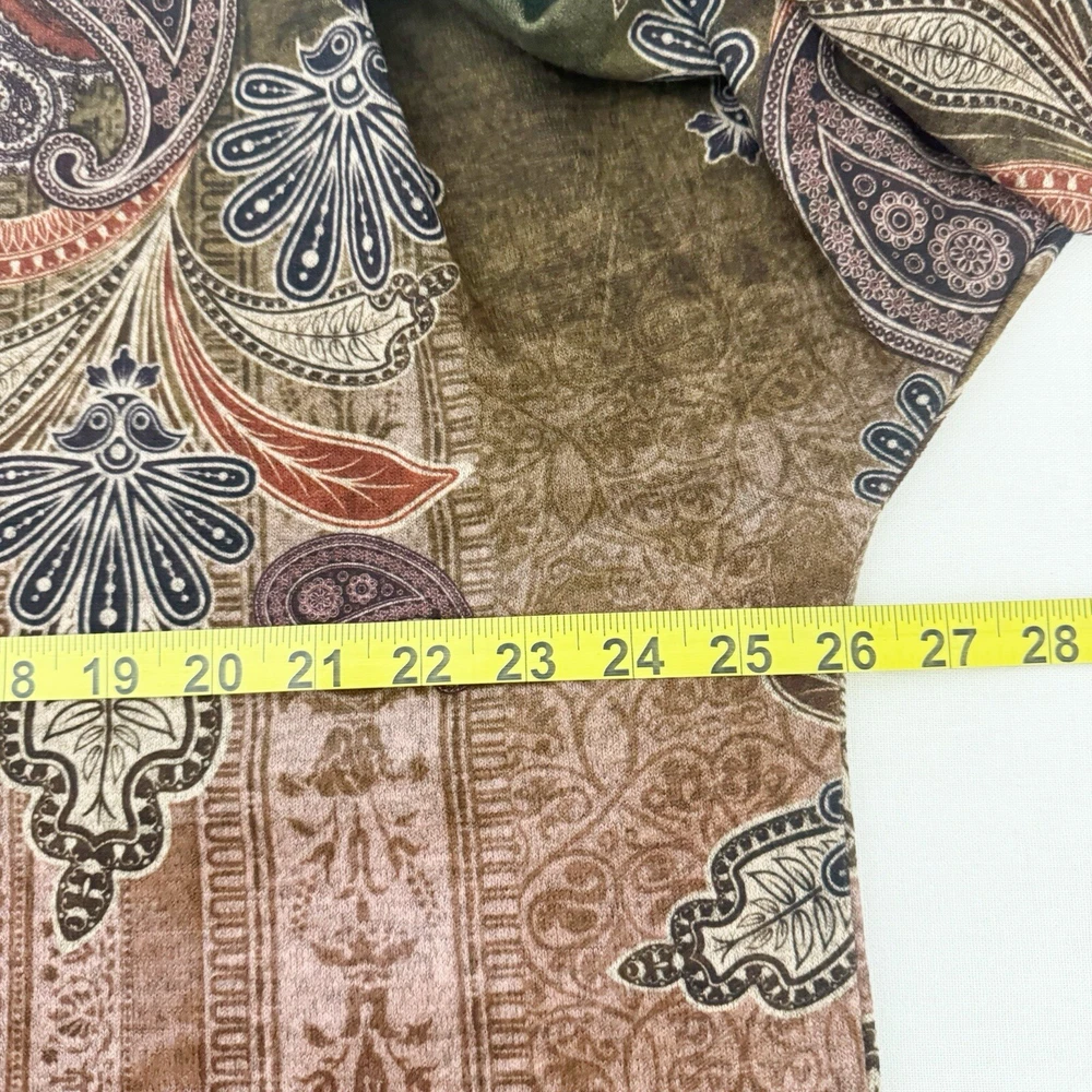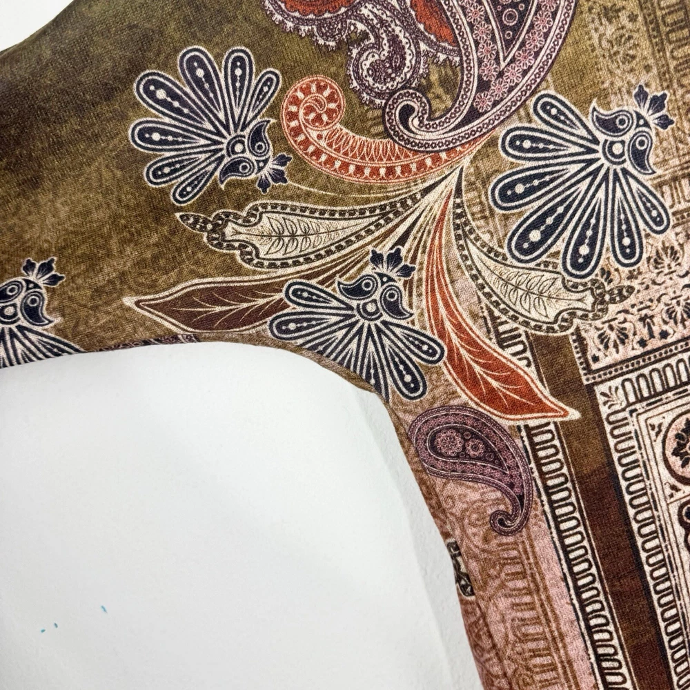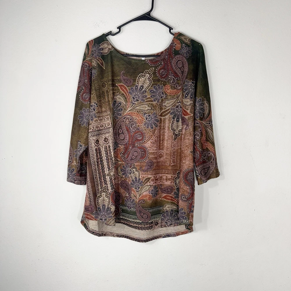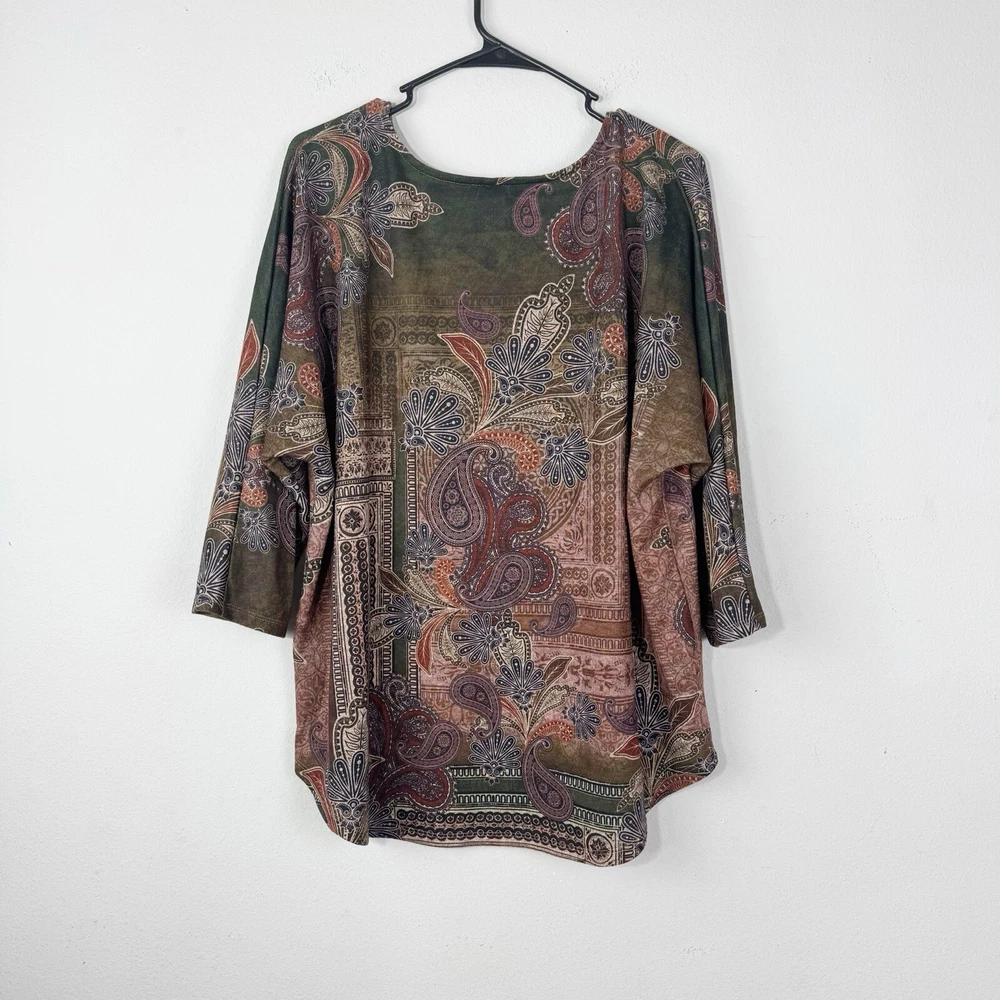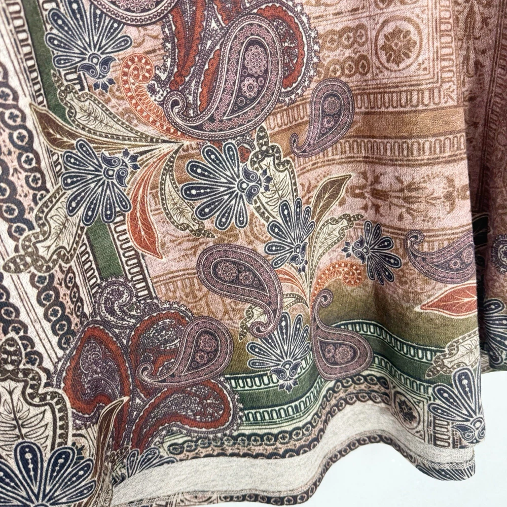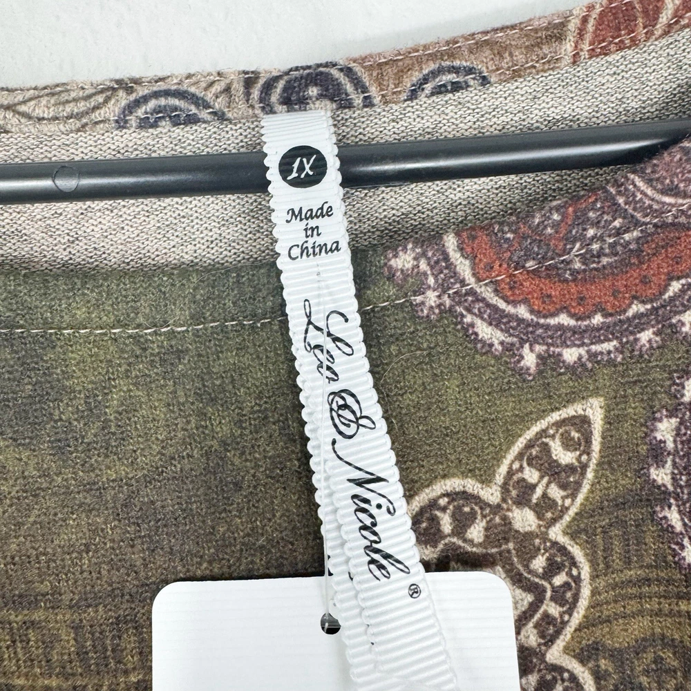 Leo and Nicole Women's Stretch Knit Paisley Patrol Print Top 1X Brown