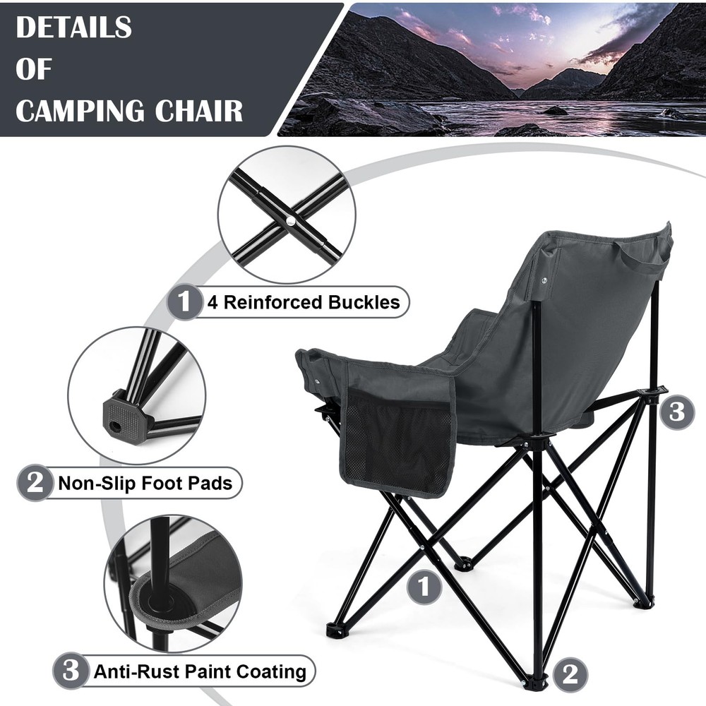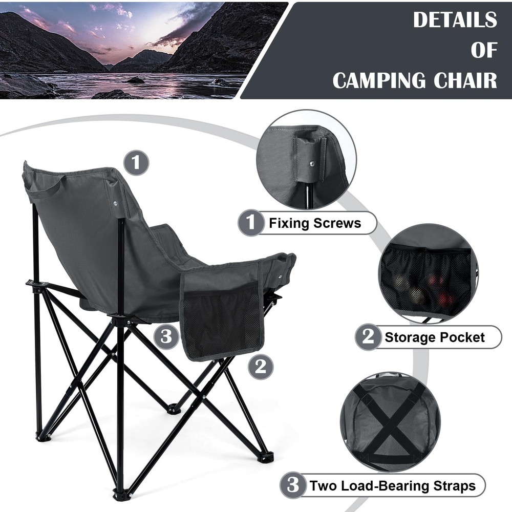 Supreme Comfort Indulgence, camping chair crafted with high-strength double layered 600D oxford fabric with pearl cotton, this moon chairs are designed with strength and comfort in mind for you, its moon-shaped deep ergonomically seat ensures unparalleled comfort and relaxation Convenience and Spaciousness, Unfold our portable camping chair, measuring 24.5" (L) x 19" (W) x 32" (H), and also widen the seat for enough comfort for even the largest of sizes, the convenient Side Pocket keeps your phone and beverage close at hand, experience comfort and convenience in one package Lightweight and Portable, designed for on-the-go convenience, our folding camping chair features an innovative folding design, with a portable carrying bag included, it effortlessly folds down for easy storage and transport, weigh only 6lbs, ensuring a hassle-free journey Safety and Stability, our foldable chair boasts impressive strength with its heavy duty crafted from ultralight aluminum alloy that provides lasting support for 300lbs, it is equipped with a non-slip bottom and a robust support system, ensuring a safe and stable seating experience Share Your Outdoor Time, perfect for parents, couples, families and friends, it's your reliable companion for outside camping, fishing, concerts, picnics, sports, travel and beach activities, experience worry-free relaxation with our trusted camp chairs by your side