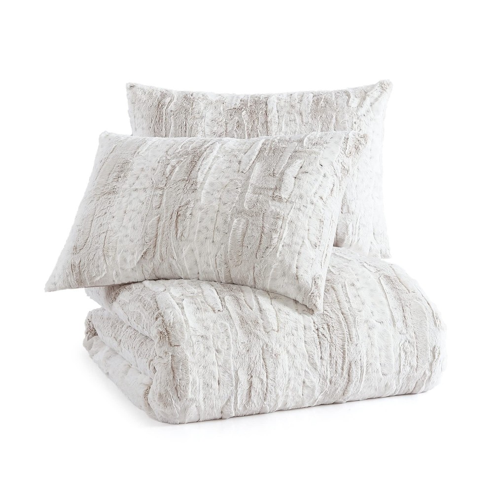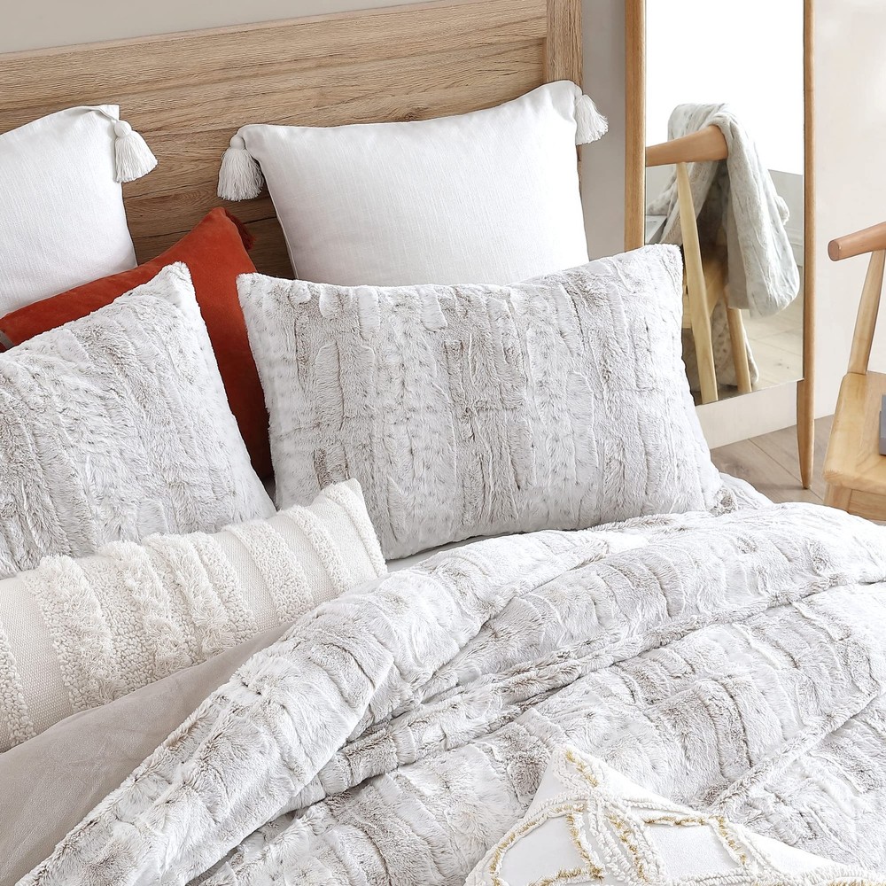 LEOPARD PRINT COMFORTER Embrace the warmest cuddles with the Snow Leopard comforter set. A fierce snow leopard pattern covers the face of this comforter and sham for subtle wild style in your bedroom. The abundance of soft texture lends cozy nights when you need all the snuggles. HIGH QUALITY Inspiring designs and exceptional fabrics create a luxurious look and feel SOFT & ELEGANT Cozy and comfortable comforter bedding set coordinates with most bedroom and farmhouse decor; Comforter reverses to a plush velboa fabric in solid grey PERFECTLY LAYERED Experience a classic and simple look that transitions from season to season 3-PC COMFORTER AND SHAM SET INCLUDES1 comforter (104 x 92 inches) and 2 shams (20 x 36 inches); 100% Polyester with 100% Polyester fill; Machine wash