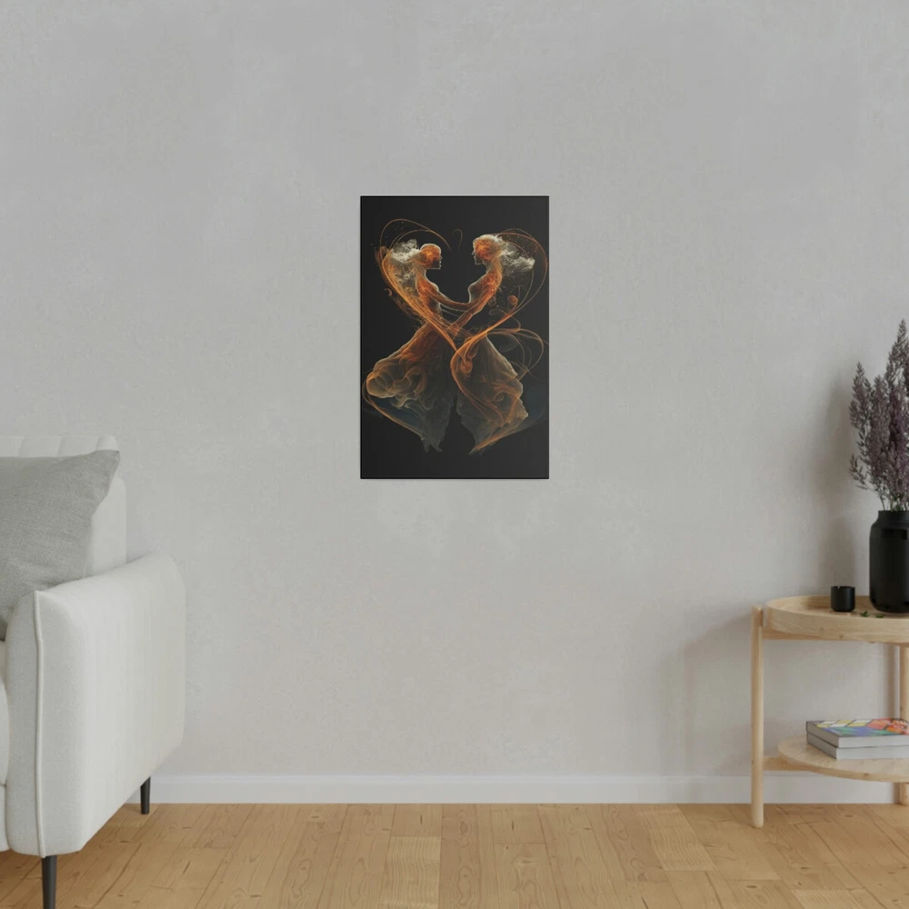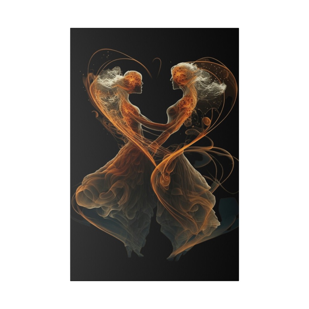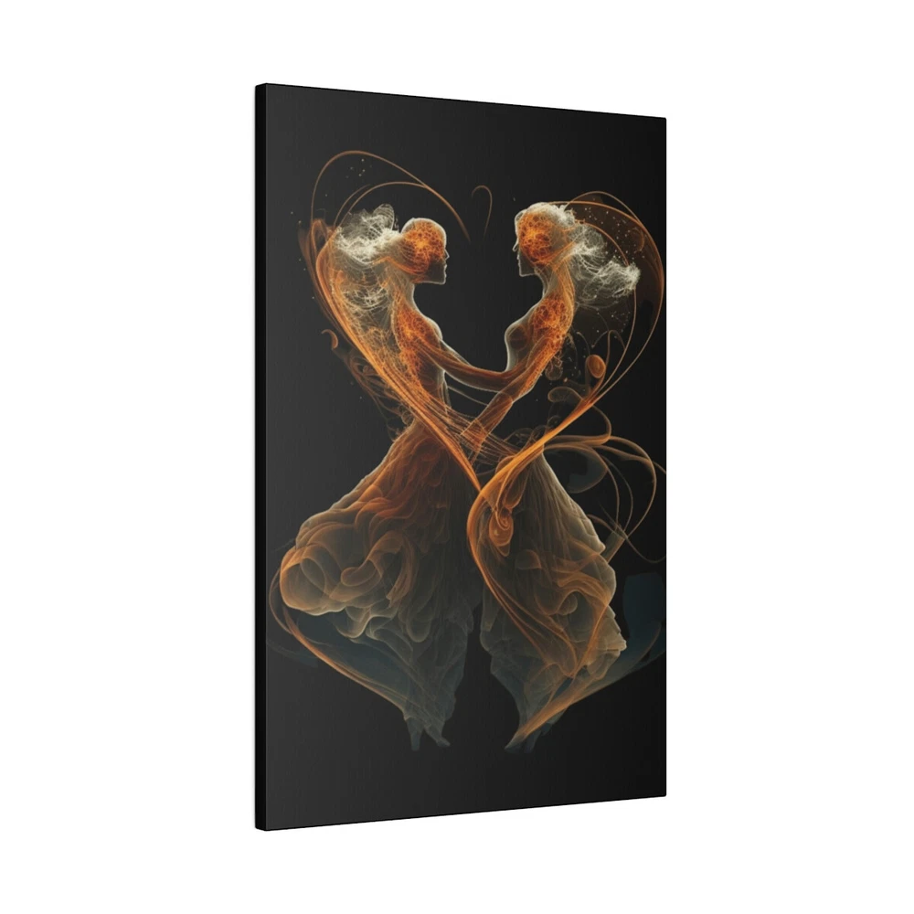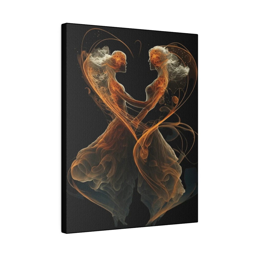 Valentines Day Gift Lesbian Love | Wall Art | For Her | Tonight We Dance by Artist Gabriel Gabor Place your custom artwork, photos, or creative projects on a canvas you'll be proud to use. Each matte canvas comes with back hanging already included for convenient placement. The frame is made with profile radial pine that is ethically sourced from renewable forests. .: Cotton and polyester canvas composite with a special proprietary coating .: Frame made with radial pine sourced from renewable forests .: Ideal for your creative projects or gallery quality prints .: Soft rubber dots on bottom back corners for support .: Back hanging included .: NB! Due to the production process of the canvases, please allow for slight size deviations with a tolerance +/- 1/8" (3.2mm)