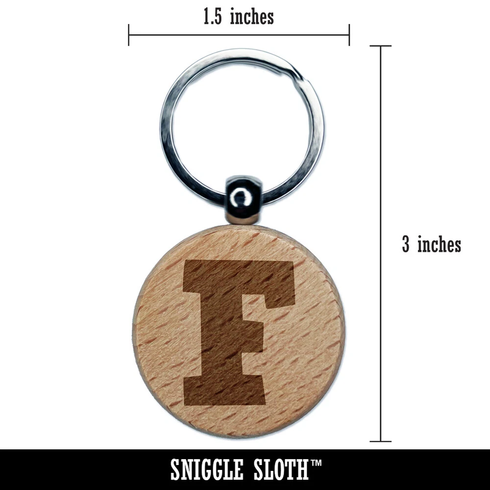Letra F mayúscula divertida fuente audaz grabada madera redonda llavero etiqueta dije