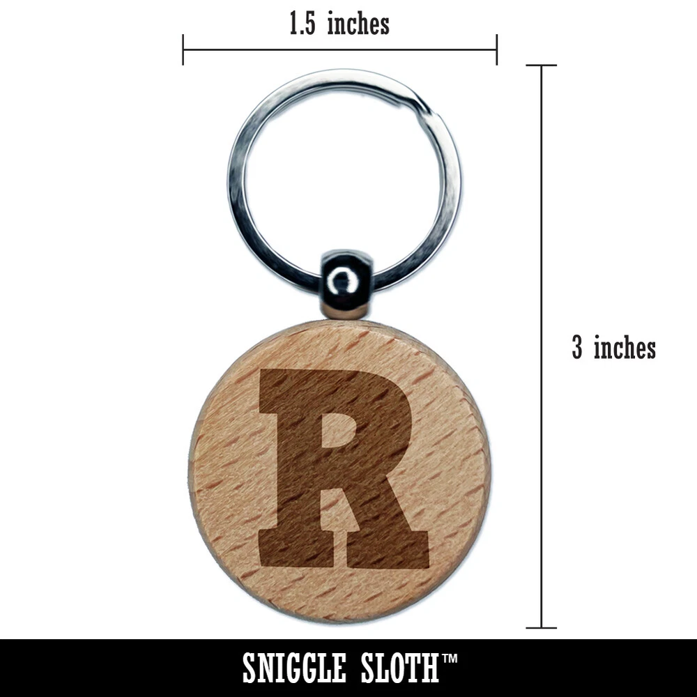 Letter R Uppercase Fun Bold Font Engraved Wood Round Keychain Tag Charm