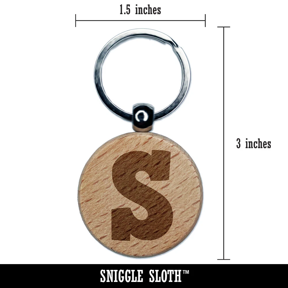 Letter S Uppercase Fun Bold Font Engraved Wood Round Keychain Tag Charm