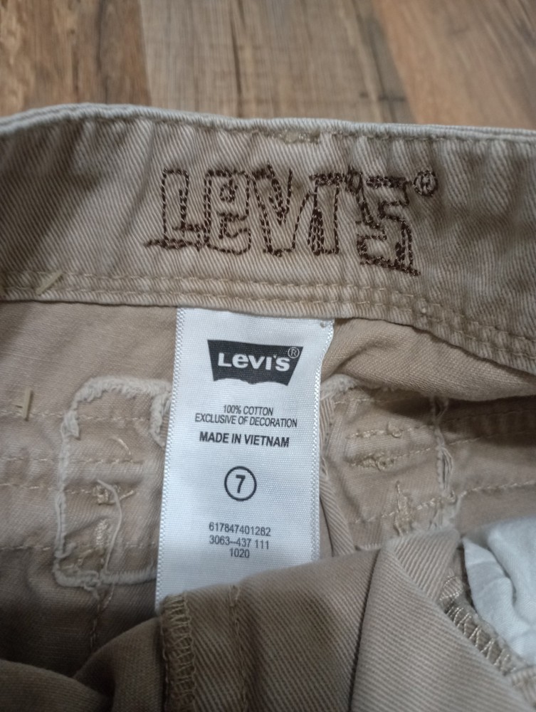 Occasion: Casual Fit: Regular Front Type: Flat Front Department: Boys Style: Cargo Season: Summer, Spring Handmade: No Brand: Levi's Fabric Wash: Medium Waist Size: 23 in Size: 7 Performance/Activity: Walking Color: Beige Pattern: Solid Fabric Type: Twill Garment Care: Machine Washable Closure: Zip Character: Boy Material: 100% Cotton Features: Adjustable Waist Vintage: No