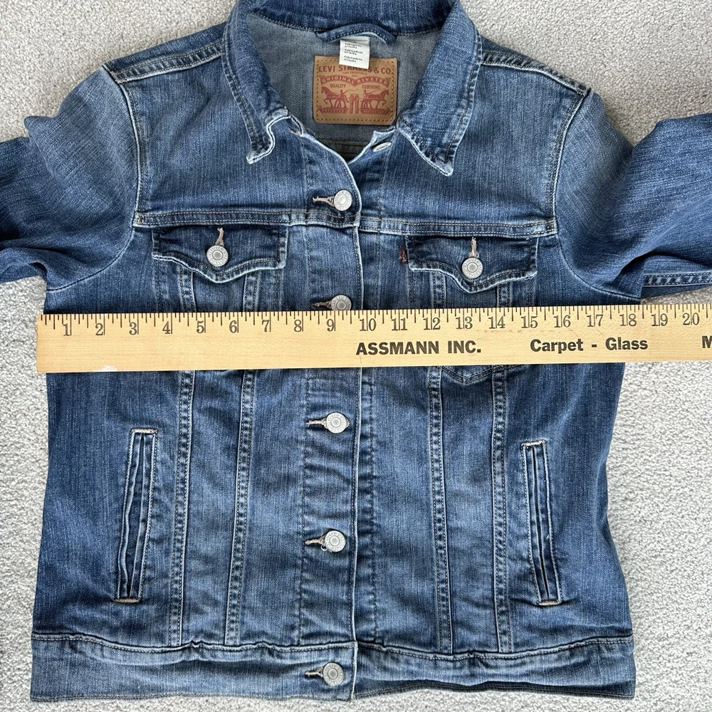 Levi Jacket Womens Blue Denim Trucker Med Wash Long Sleeve Cotton Stretch Sz L