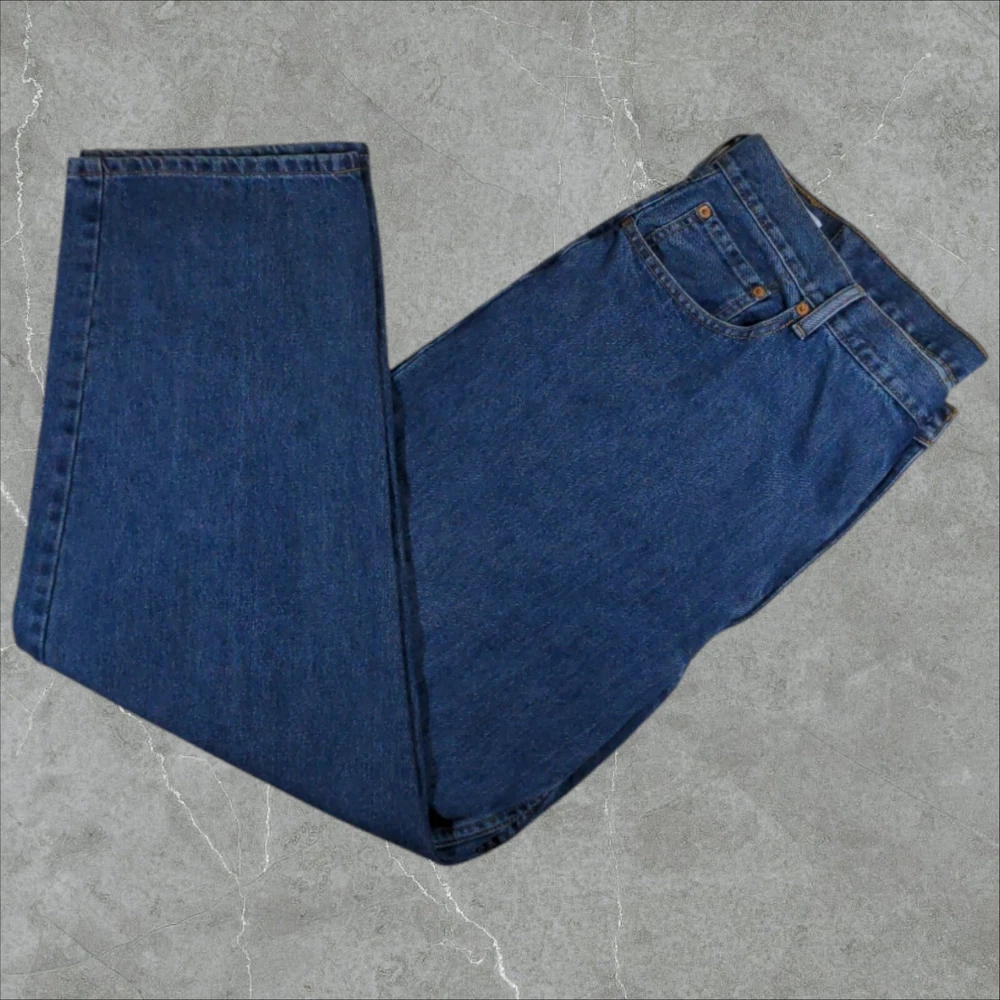 Crafted for comfort and durability, these Levi's 550 blue jeans are a wardrobe staple for those who value both style and practicality. The jeans feature a classic straight fit, designed to suit a variety of body types with a 44-inch waist and approximately 32-inch inseam. The light fabric wash and subtle logo patch add a touch of casual elegance, making them versatile for any occasion. The 5-pocket design provides ample storage while the button with zip fly closure ensures a secure fit. Machine washable and made from easy-care cotton, these jeans are ideal for year-round wear, transitioning seamlessly from season to season. Whether you're out on the town or enjoying a day at the office, these Levi's 550 jeans offer a timeless look with modern convenience. If you like this item and would like to see more like it, click the link below to check out our store. 523 Supplier LLC | eBay Store Return Policy : Customer satisfaction is important to us. Good communication is crucial for eBay sales. Before leaving feedback, please notify 523 Supplier LLC about any concerns using eBay messaging. Items must be returned in original condition, with tags if applicable. Buyers are responsible for return postage . If the wrong item was shipped, we will refund the entire amount including return shipping.