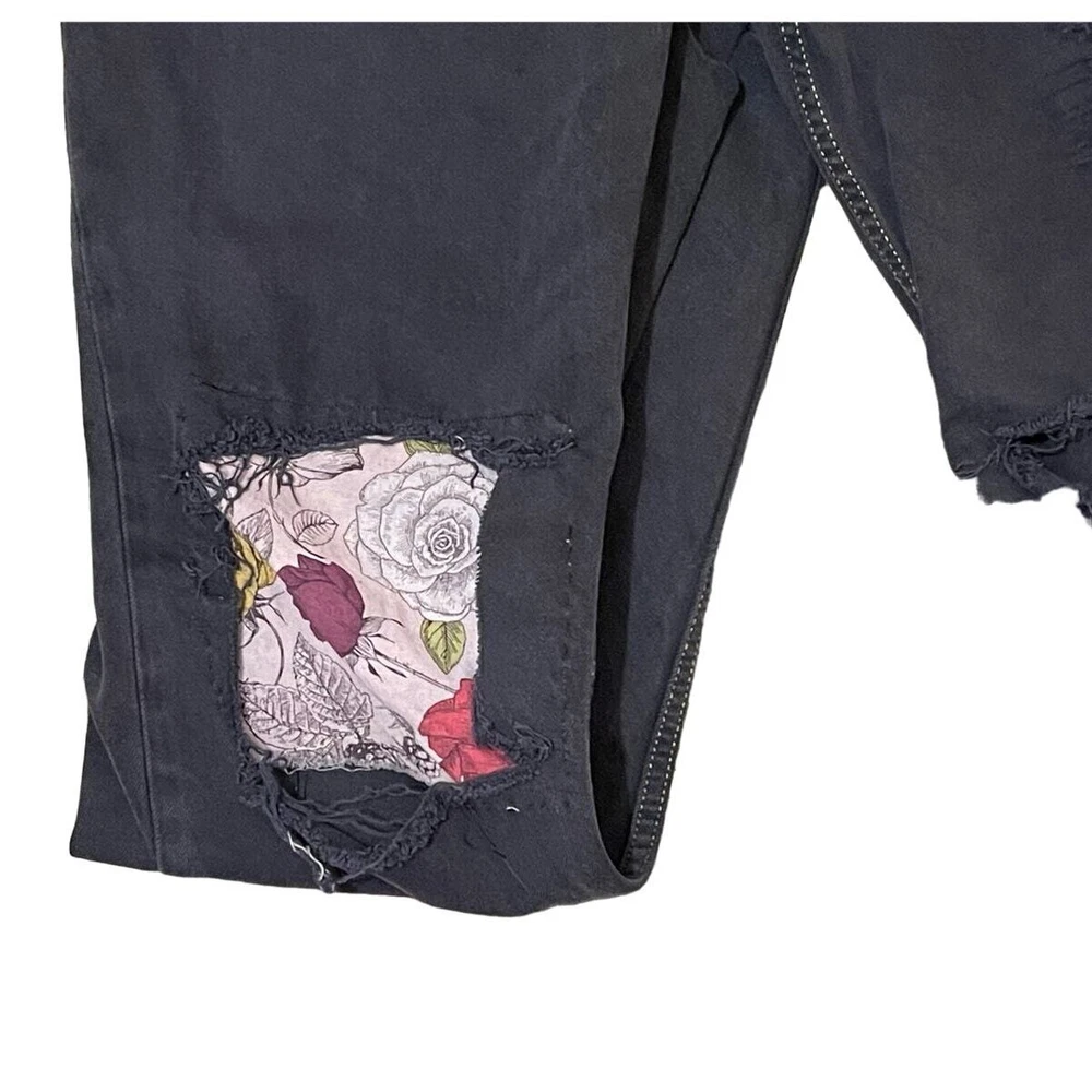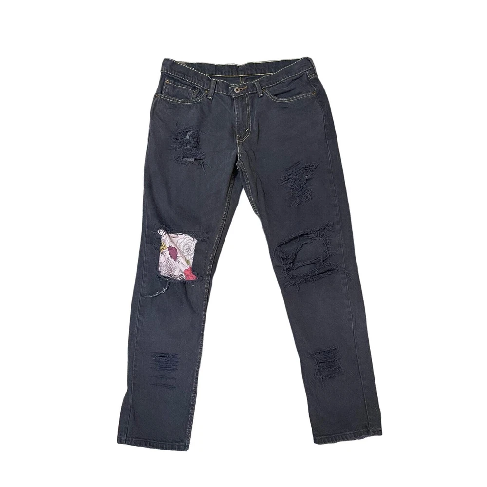 Unique pair of upcycled Levi's Womens Jeans with Patches and heavy distressing! Levi & Strauss Co Jeans Dark Navy Floral patch Rips for a destroyed look! Measurements approximate in inches taken flat: Waist 17/Rise 9.5/Inseam 29.5 Ships same or next day! Bundle for best savings! Thank you for shopping with me!