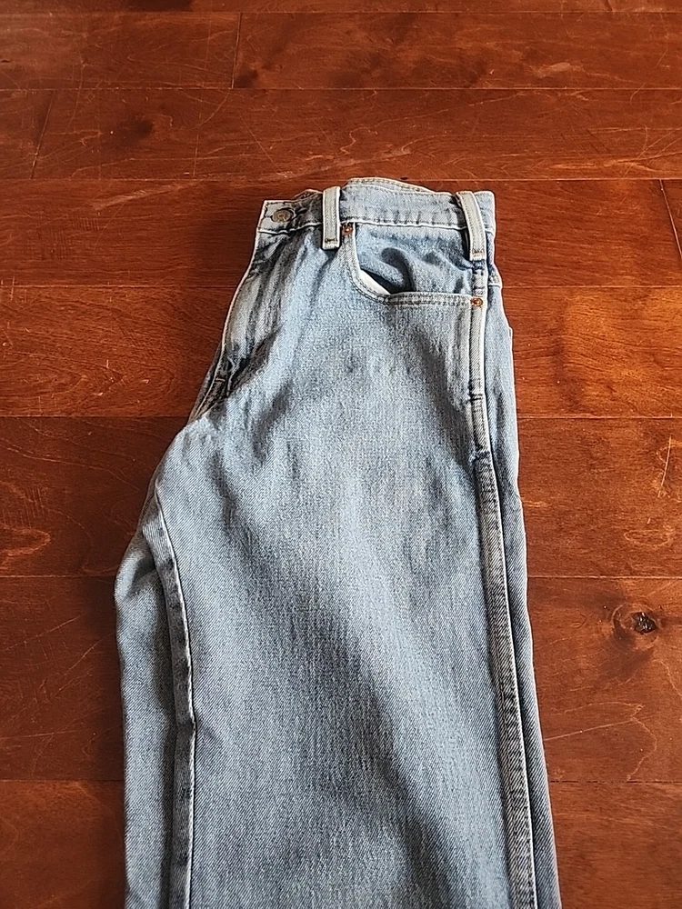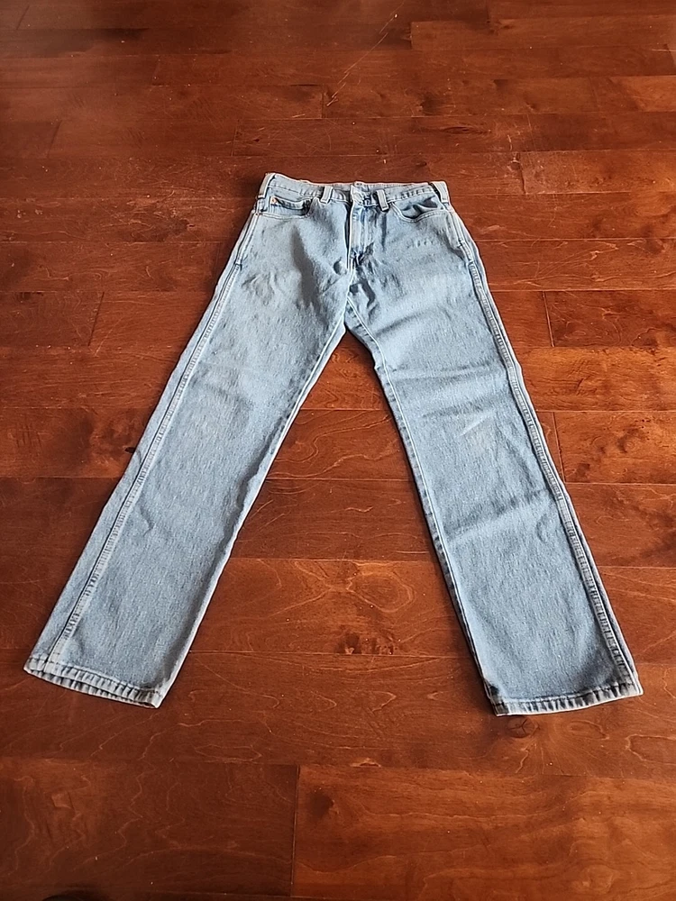 These have been worn once or twice and are practically new. Crafted for comfort without compromising on style, these Levi's Western Fit Jeans in a timeless medium wash are the quintessential addition to any man's wardrobe. The size 30 waist and 32 inseam ensure a relaxed fit that's perfect for various occasions, from casual outings to more polished events. The durable denim blend, featuring cotton, polyester, polyamide, and elastodiene, offers both stretch and easy care, adapting seamlessly to your lifestyle. Details such as the classic straight leg cut, five-pocket design, and signature Levi's accents, including the iconic logo patch and button, embody the jeans' authentic biker, cowboy, and classic American spirit. Machine washable and constructed with a mid-rise waist and a secure zip/button closure, these jeans are a practical choice for every season. Whether you're hitting the town or enjoying a laid-back day, they're sure to become your go-to pair.