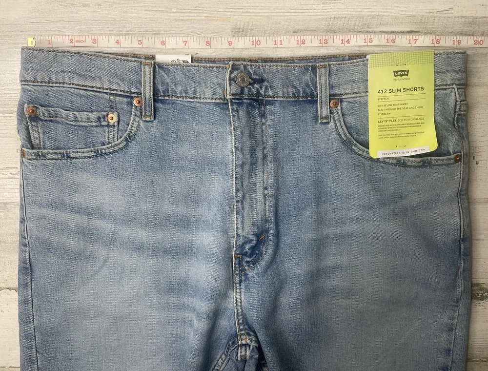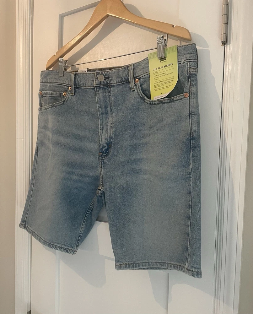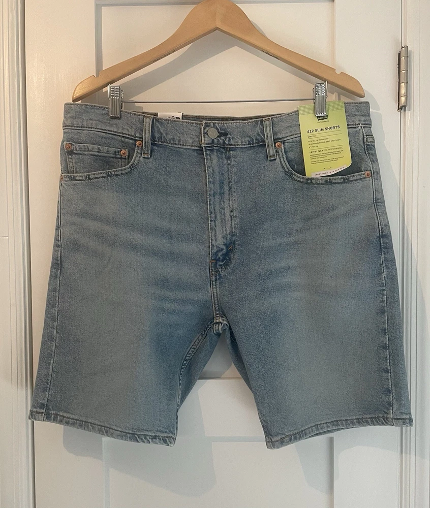 Levis 412 Slim Jean Stretch Shorts Light Wash Blue MSRP $49.50 Men’s Sz: 38 NWT! Brand New! No Warranty or Returns. Only ship to 50 states, Virgin Islands, Guam & PR Please pay purchase within 3 days. Feedback is highly appreciated, but please contact us before giving bad feedback. Our goal is for customer satisfaction!! Message us with any questions!! Thank you very much for looking!