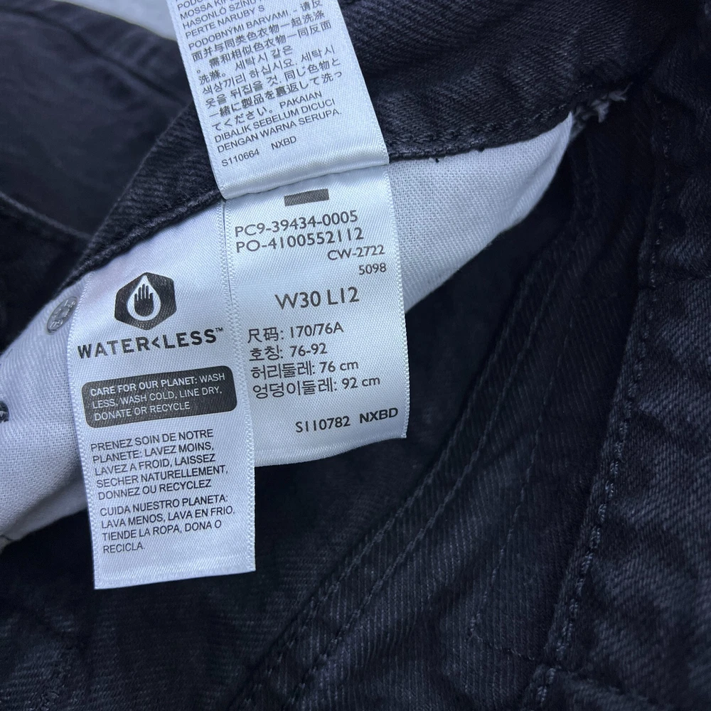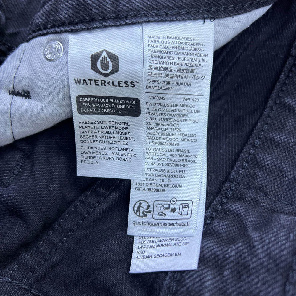 Theme: 90s, American, Outdoor, Retro, Classic Season: Fall, Spring, Summer, Winter Accents: Button, Logo, Zipper Features: Easy Care, Pockets Pocket Type: 5-Pocket Design Size: 30 Fabric Type: Denim Color: Black Country/Region of Manufacture: Bangladesh Fit: Relaxed Front Type: Flat Front Material: Cotton Style: Bermuda Garment Care: Machine Washable Rise: High (Greater than 12 in) Seller Notes: “Good used condition with light wear” Closure: Zip Personalize: No Fabric Wash: Dark Brand: Levi's Occasion: Casual, Travel Vintage: No Department: Men Waist Size: 30 in Handmade: No Inseam: 11 in Pattern: Solid Size Type: Regular