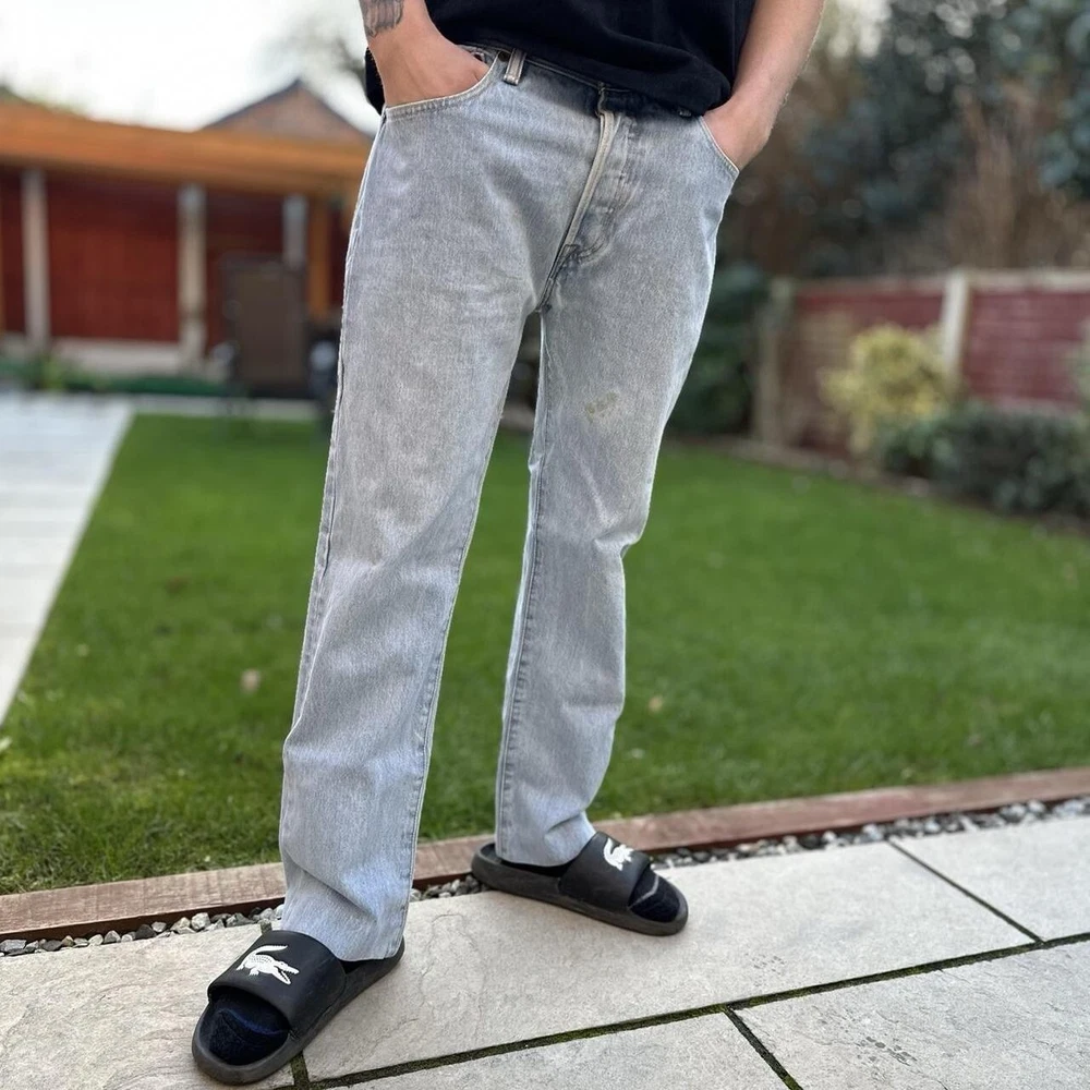 Levi's 501 Men's Preowned Denim Jeans Straight Fit Measurements: Hip To Hip 17" Length 29" (Turned Up) Rise 11" Hem 8" Model is 5"10, Slim Build Condition 3/5 - General Wear / Some Light Marks Dispatched With Royal Mail 2nd Class