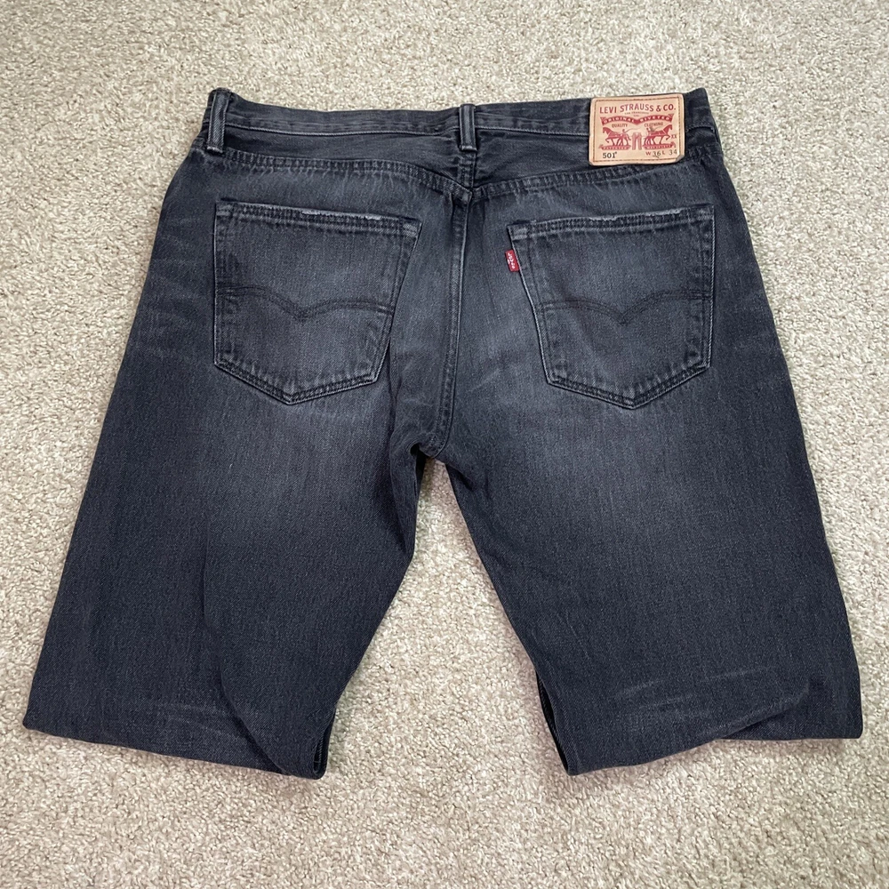 Size:36Fit:RegularFabric Type:DenimStyle:StraightProduct Line:Levi'S 501 SeriesColor:Blackgtin13:Does not applyInseam:33 inFeatures:PocketsModel:Levi's 501Vintage:NoBrand:Levi'sClosure:ButtonUPC:Does not applyDepartment:MenSeller Notes:“Great condition, no holes and no major signs of wear.”Size Type:RegularRise:Mid (10-12 in)Waist Size:36 inFabric Wash:Charcoal WashType:JeansMaterial:Cotton