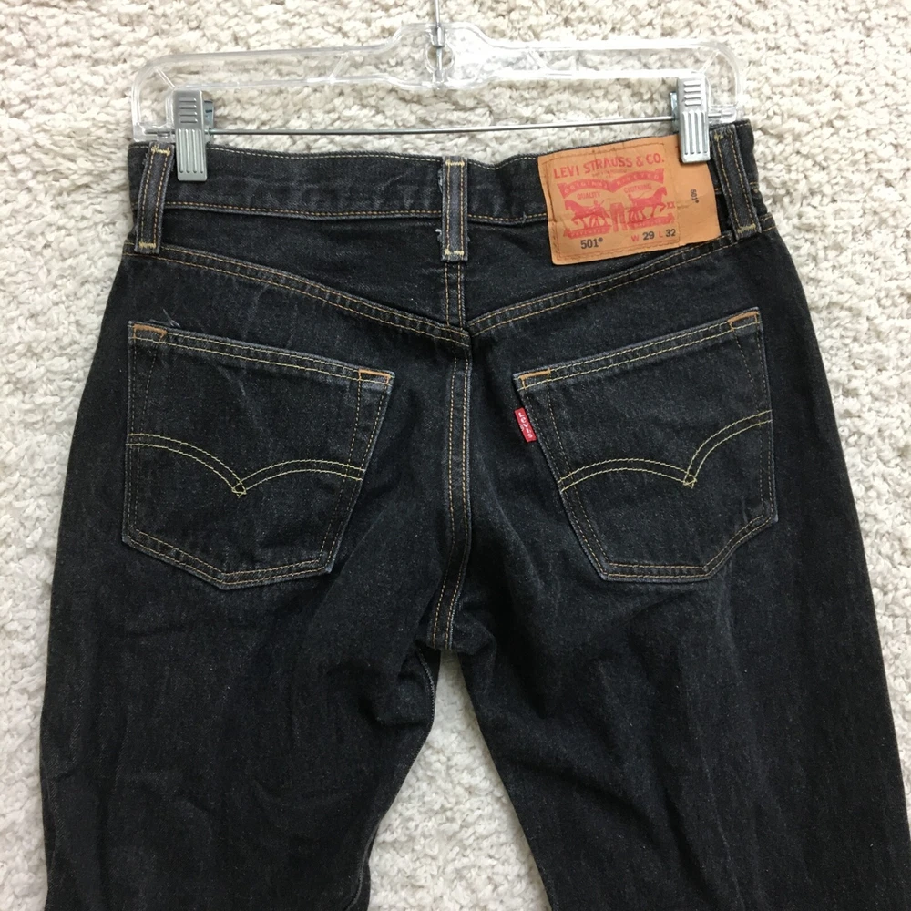 Brand: Levi's Seller Notes: “Good Used Condition. Please, See Pictures for Full Condition and Measurements.” Rise: Mid (10-12 in) Country/Region of Manufacture: Mexico Inseam: 30 in gtin13: Does Not Apply Pattern: Solid UPC: Does Not Apply Pocket Type: 5-Pocket Design, Coin Pocket, Slash Pocket Features: Comfort, Easy Care, Pockets Garment Care: Machine Washable Size: 29 Fit: Regular Fabric Type: Denim Style: Straight Color: Black Season: Fall, Spring, Summer Waist Size: 28 in Type: Jeans Material: Cotton Size Type: Regular Product Line: Levi'S 501 Series Department: Men Fabric Wash: Dark Closure: Button Model: Levi's 501 Accents: Button