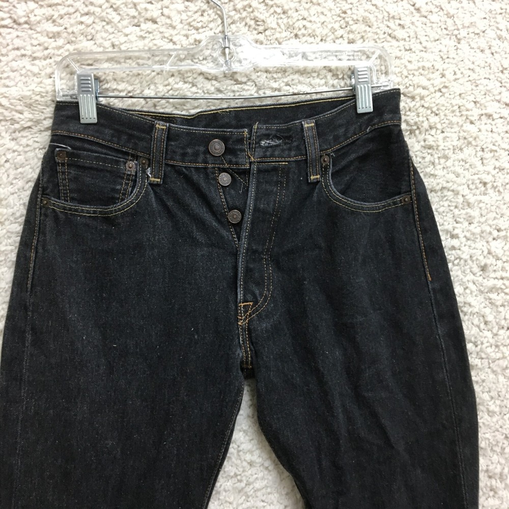 Levis 501 Original Fit Mens Black Straight Leg Jeans Dark Wash 29x32 28x30