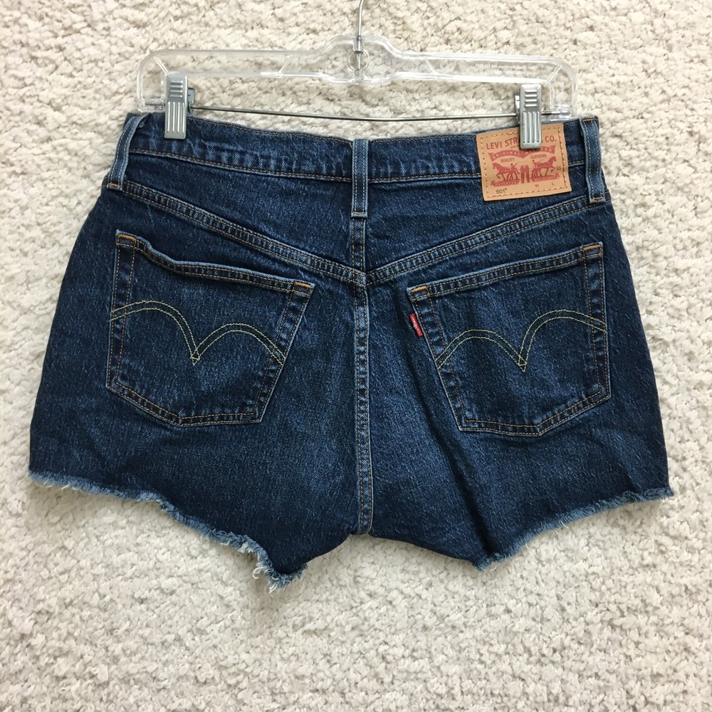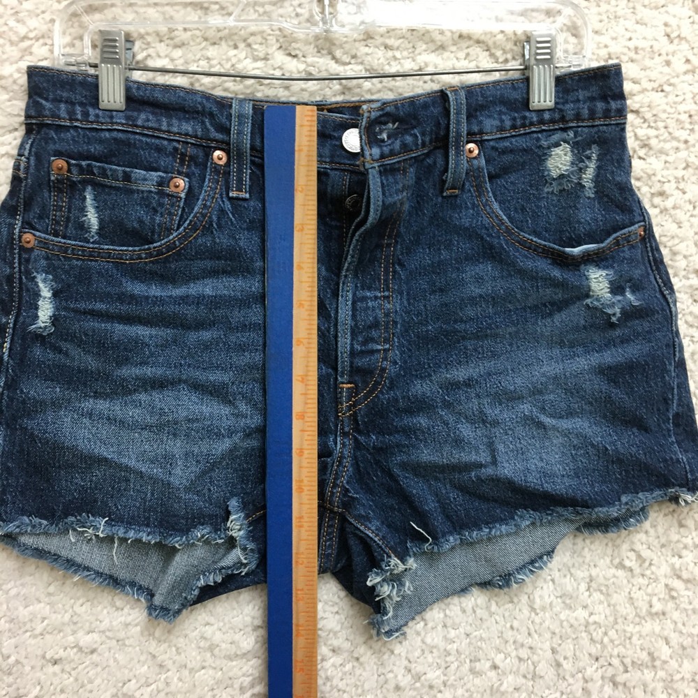 Levis 501 Shorts 29 Womens Blue Denim Cut Off Button Fly High Rise Distressed WE SHIP ITEMS DAILY, SO EXPECT TO RECEIVE YOUR ITEMS FAST. YES, WE COMBINE SHIPPING !!! Measurements: Waist / Length (Inseam) Measured flat in inches. Please, See Pictures for Measurements. PLEASE NOTE : Please look at the measurements before purchasing. If you are not sure about the size, flat lay a similar item of your own and measure that item to compare with our measurements. We do accept returns within 60 days . Please note, the item must be returned in the exact same condition as it was received. The Seller pays return shipping if the item does not fit. We request that you select "Item does not fit" when returning an item that does not fit. Thank You! Don't forget to check out Our Other listings. Thanks and have a great day.