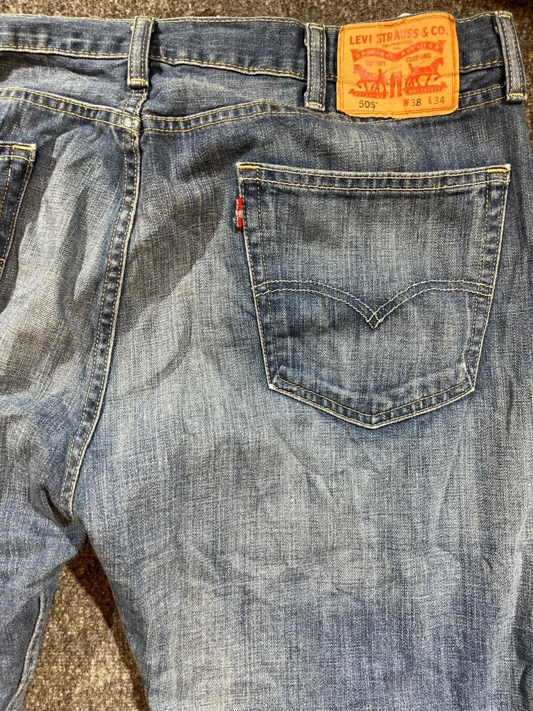 Elevate your denim game with these Levi's 505 jeans. Made with solid cotton denim and featuring a medium wash, these jeans have a regular fit and straight leg design, perfect for any casual occasion. The 5-pocket design includes a button and zip closure, with accents like the Levi's logo and easy care features. These jeans are part of the Levi's 500 series and have a waist size of 38 inches and an inseam of 33 inches, making them a great fit for men who value comfort and style. Whether you're going for a USA-inspired or 80s/90s-themed look, these Levi's 505 jeans are a versatile addition to any wardrobe.