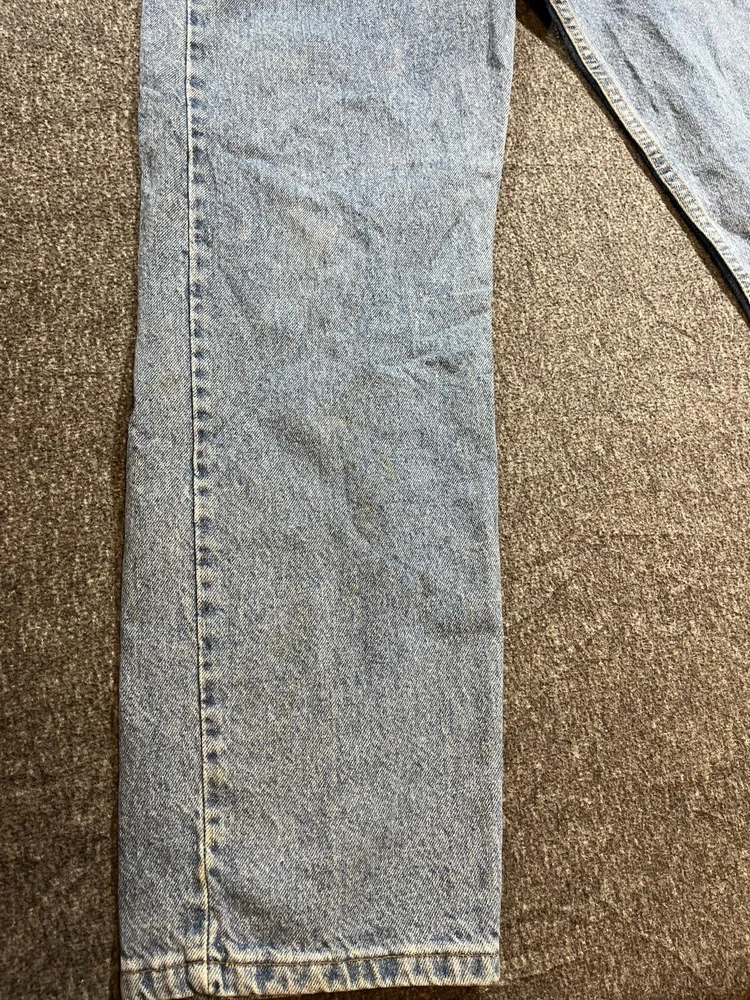 Get your hands on these classic Levi's 505 denim jeans, perfect for any occasion. With a solid blue color and straight leg fit, these jeans feature a 5-pocket design with a zip and button closure. The cotton denim fabric is easy to care for and provides comfort throughout the day. These jeans are part of the Levi's 500 series and have a medium wash, making them a versatile addition to any wardrobe. The waist size is 40 inches and the inseam is 30 inches, making them a great fit for men of all sizes. The Levi's brand logo is accented with button and zipper details, adding a touch of style to these timeless jeans.