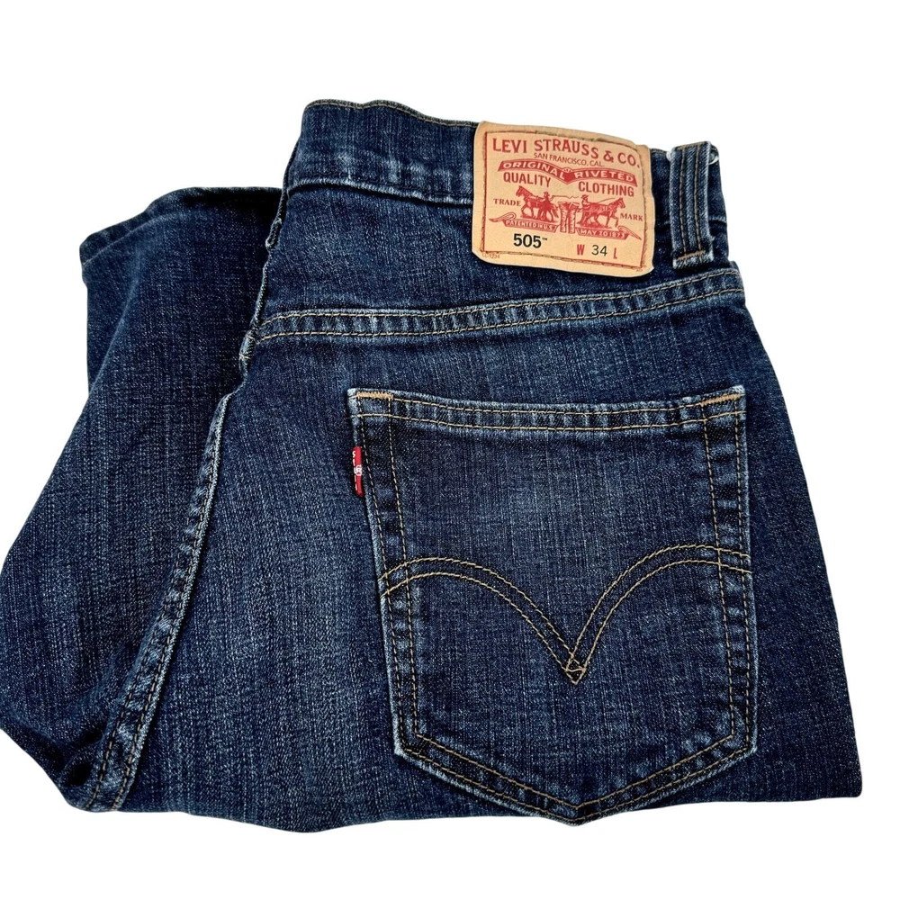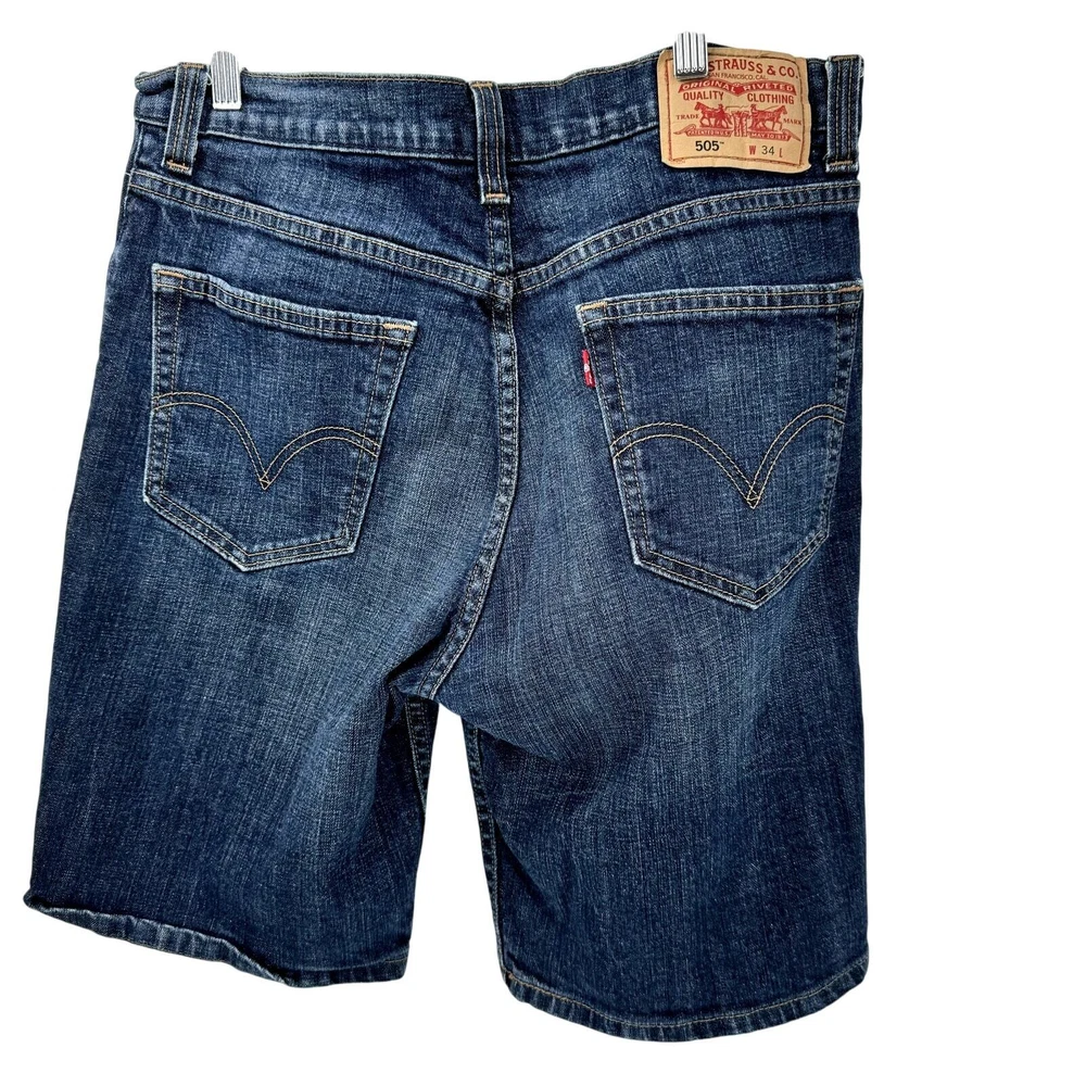 Levi's 505 Jean Shorts Mens 34 (33x9 ACTUAL) Straight Fit Blue Denim Jorts Very good condition, see all pictures for views. •Waist: 33" •Inseam: 9" •Rise: 12" Ships out same day or next open postal day. Thank you for your purchase, we appreciate you!
