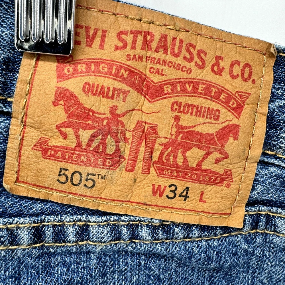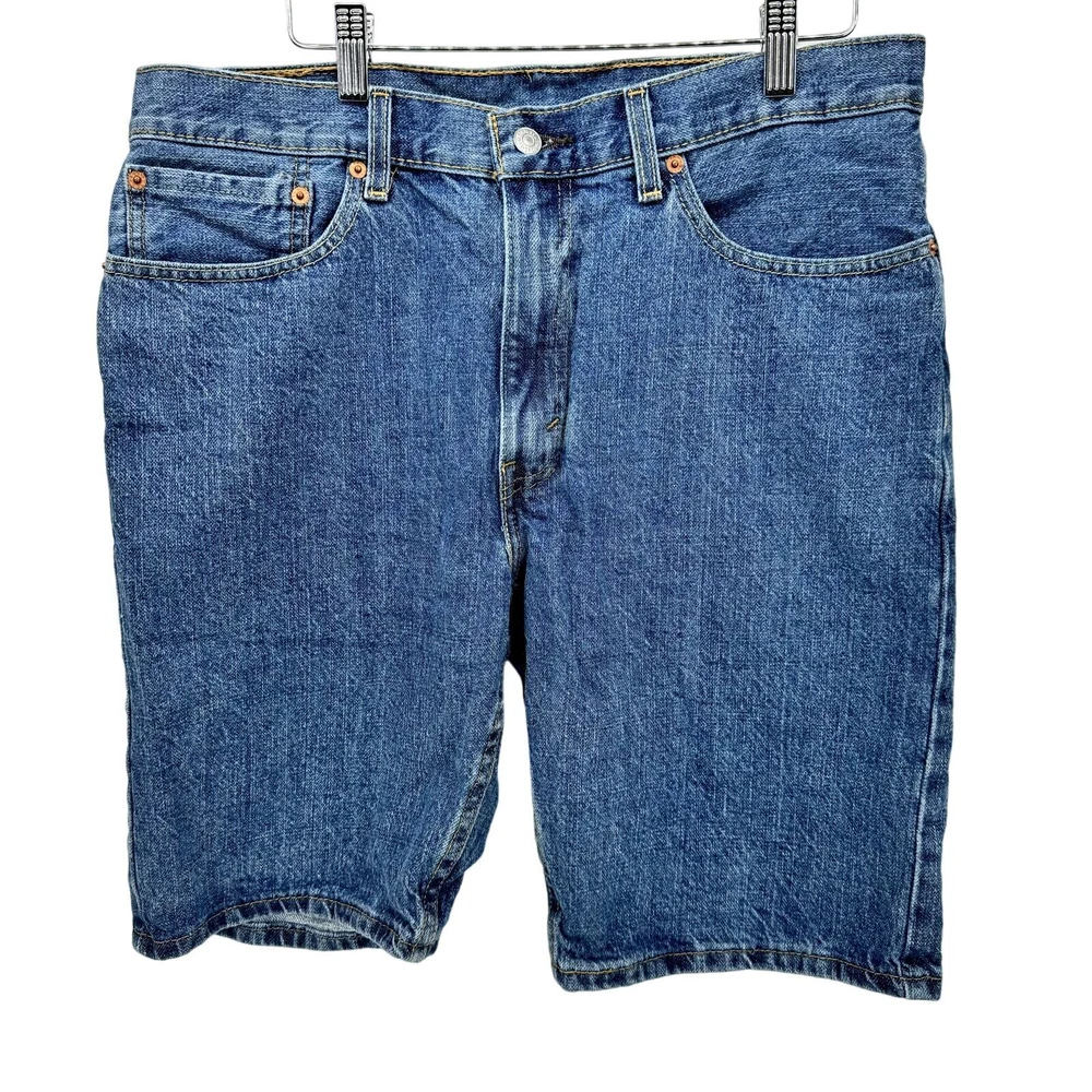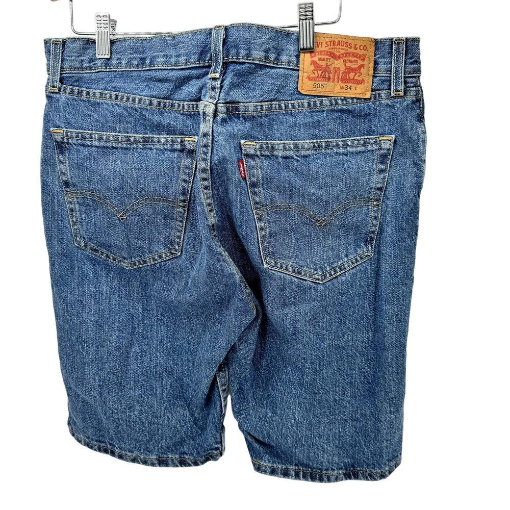 Levi's 505 Regular Fit Jean Shorts Mens 34 (34x9.5 ACTUAL) Blue Denim Jorts Very good condition, see all pictures for views. •Waist: 34" •Inseam: 9.5" •Rise: 11" Ships out same day or next open postal day. Thank you for your purchase, we appreciate you!