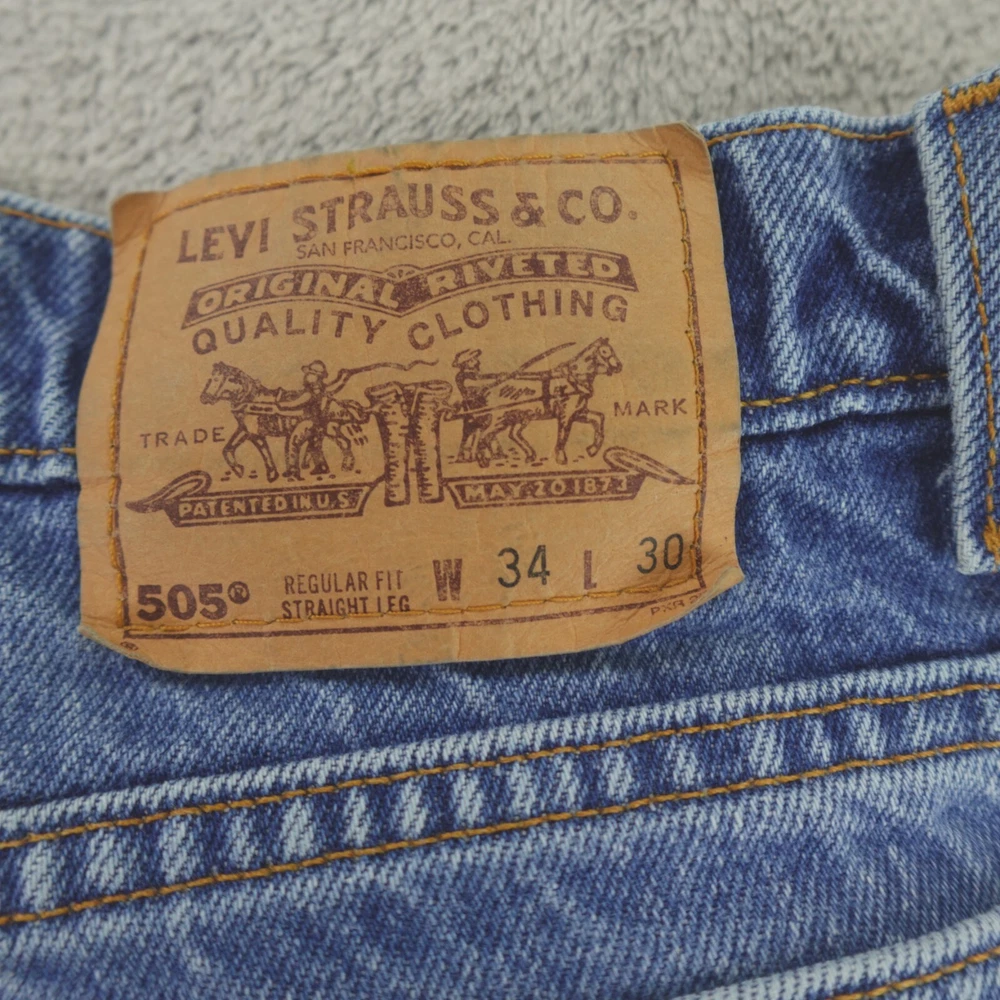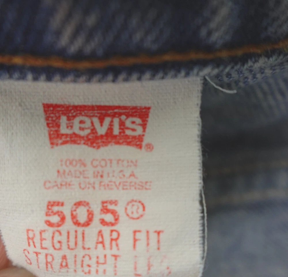 Levis 505 Jeans 34x30 Vintage 90s Orange Tab USA Made. Great worn in character. Jeans are in good pre-owned condition, freshly laundered, very minor staining is noted in a few places as pictured, no other stains, tears, or signs of wear noted, please review all photos. Note, jeans are tagged a size 34x30, actual measurements are 32x28 inches, please see photos for measurements to ensure best fit. If we missed something, don't worry, we offer free returns. Just indicate, "just didn't like it," for any reason, and we'll pay for the return. Thanks for visiting!