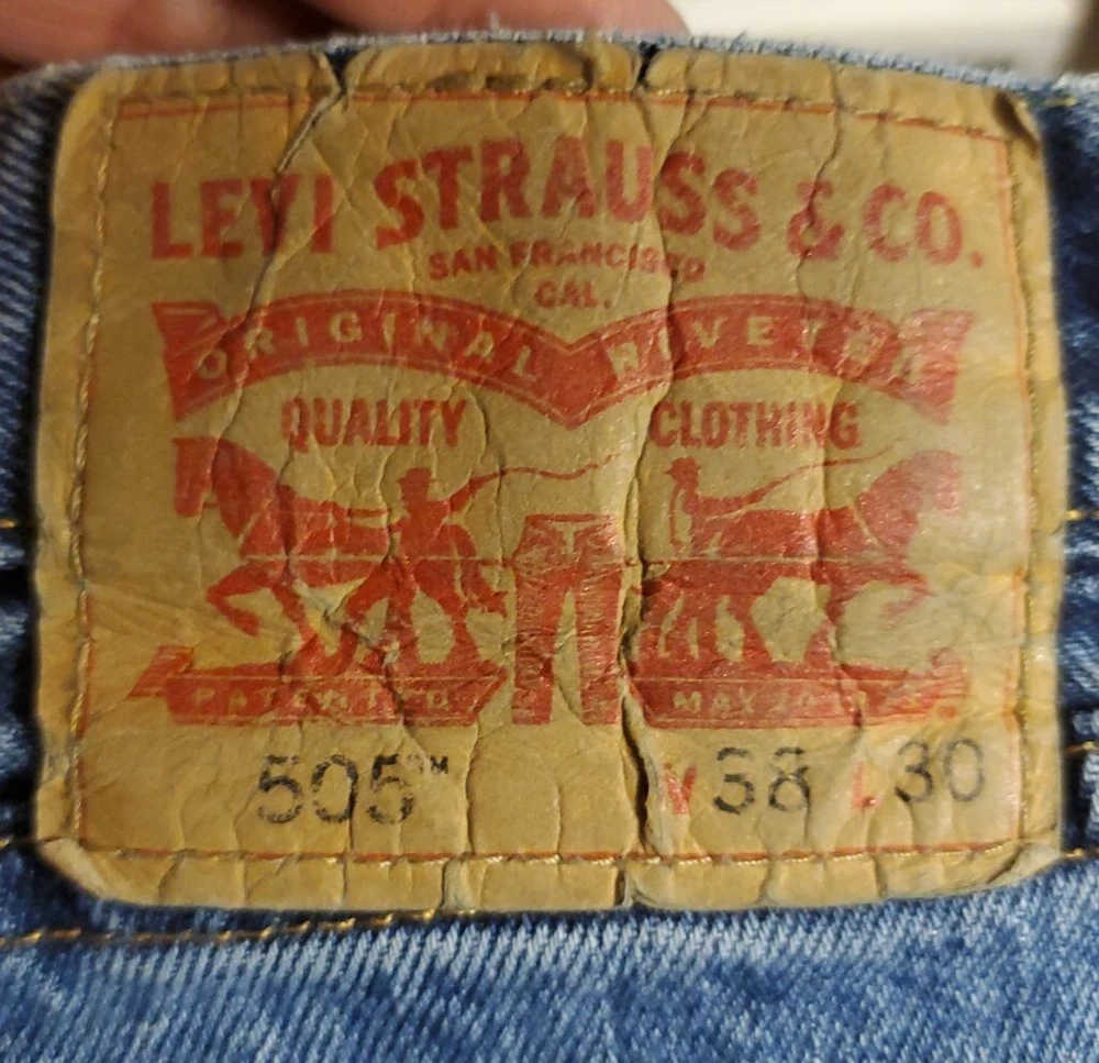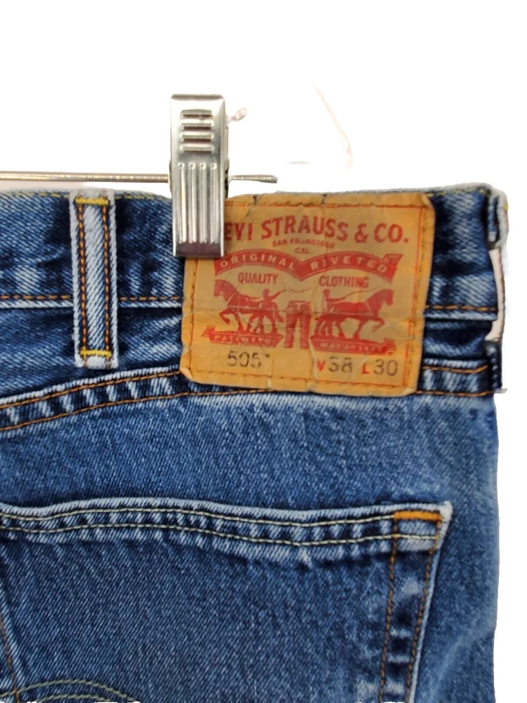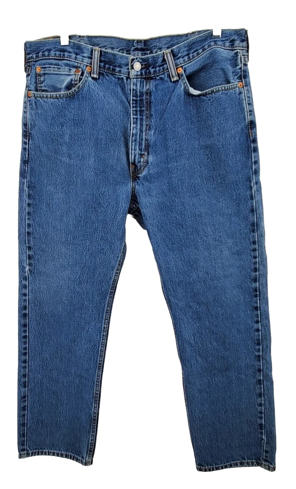 Levis 505 Jeans Men Size 38x30 High Rise Great Condition. The tag on the inside is missing, but I believe they are made of 100% cotton, they feel quite durable. the tag on the back does show some wear, please see the pictures. Please check measurements as preowned item measurements may vary. The waist measurement is 40 1 /2 inches, the rise is 13 and the inseam is 30 inches. If you have any questions, please ask before you purchase and I do combine shipping.