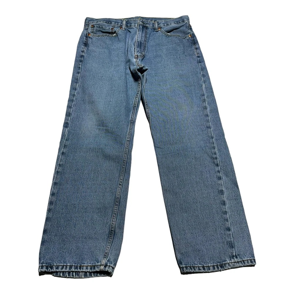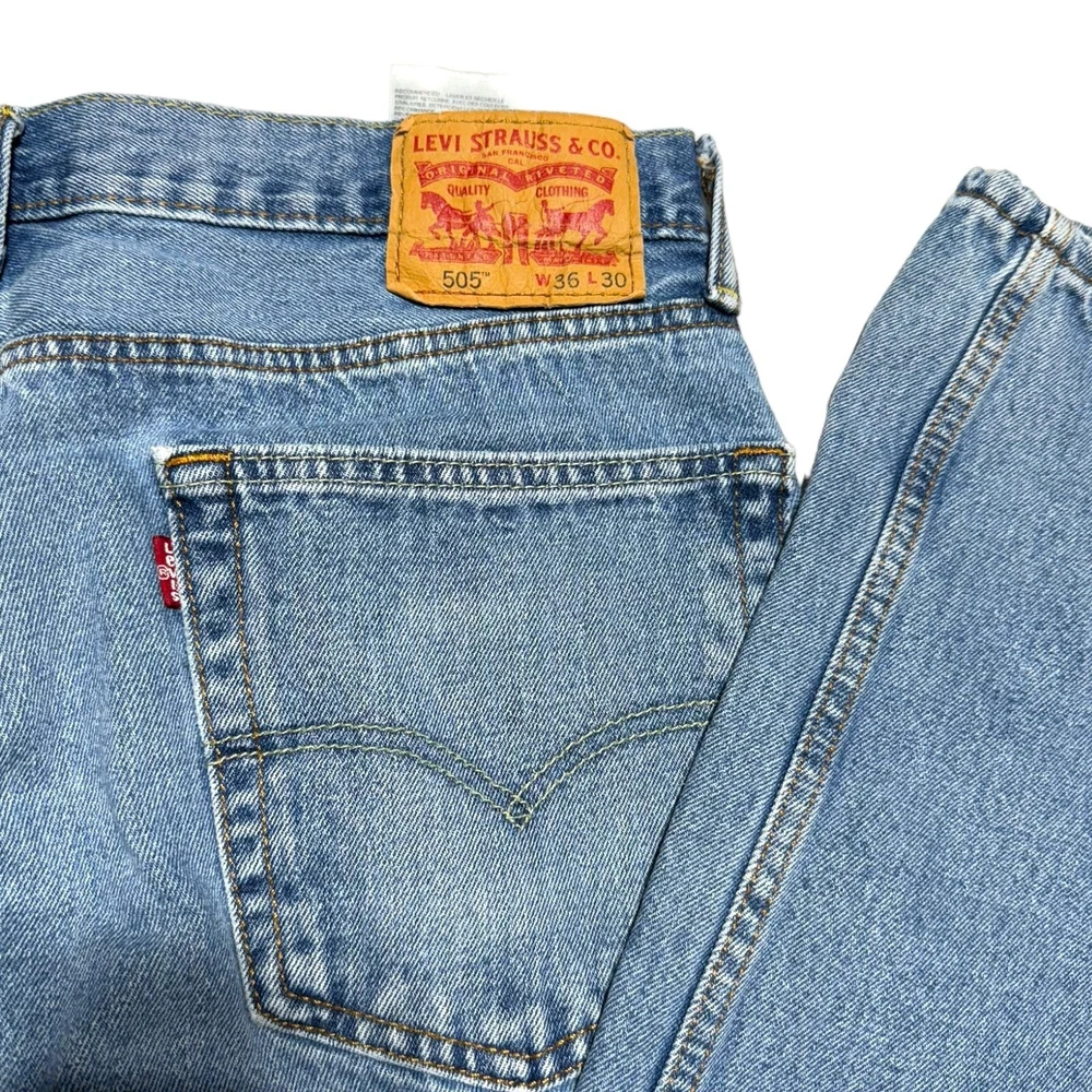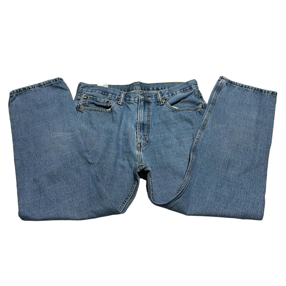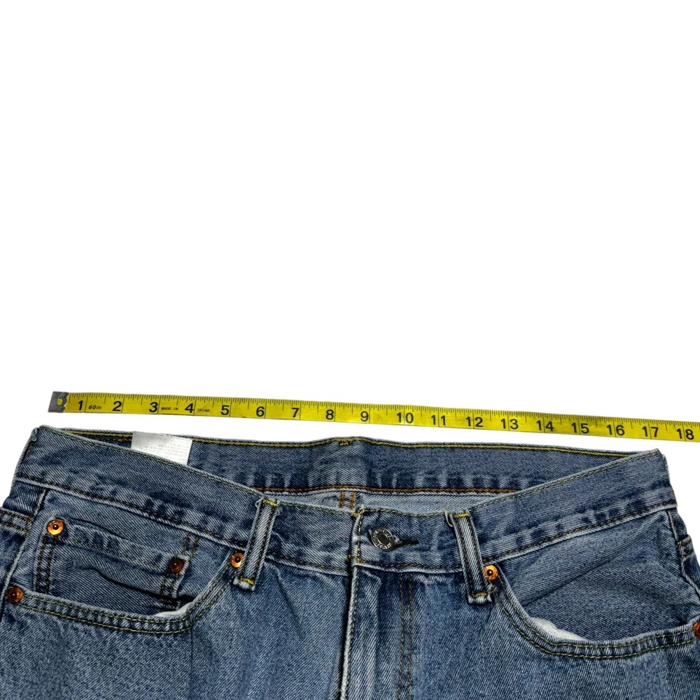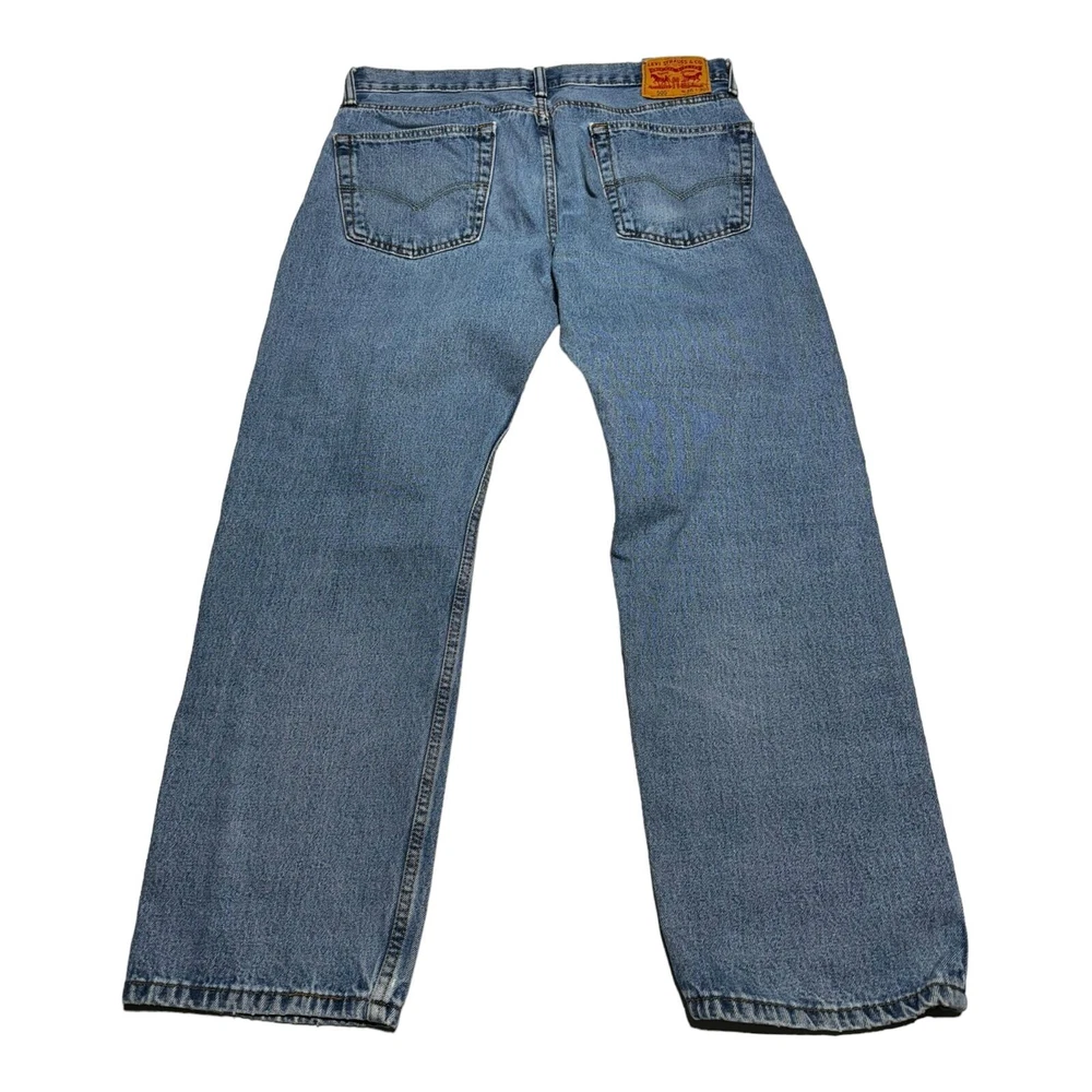 Great condition jeans from Levi's! Medium wash with just a bit of distressing. 5 pocket, zip fly. Straight cut. Waist 36 inches, length 30 inches. Soft and comfortable denim with no stretch. No rips, stains, or tears. No cosmetic damage.